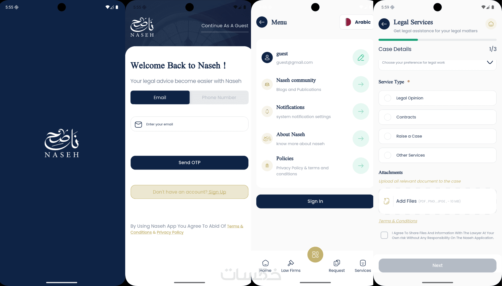 5-7 شاشات مع ربط API/Firebase و دعم اللغة العربية RTL