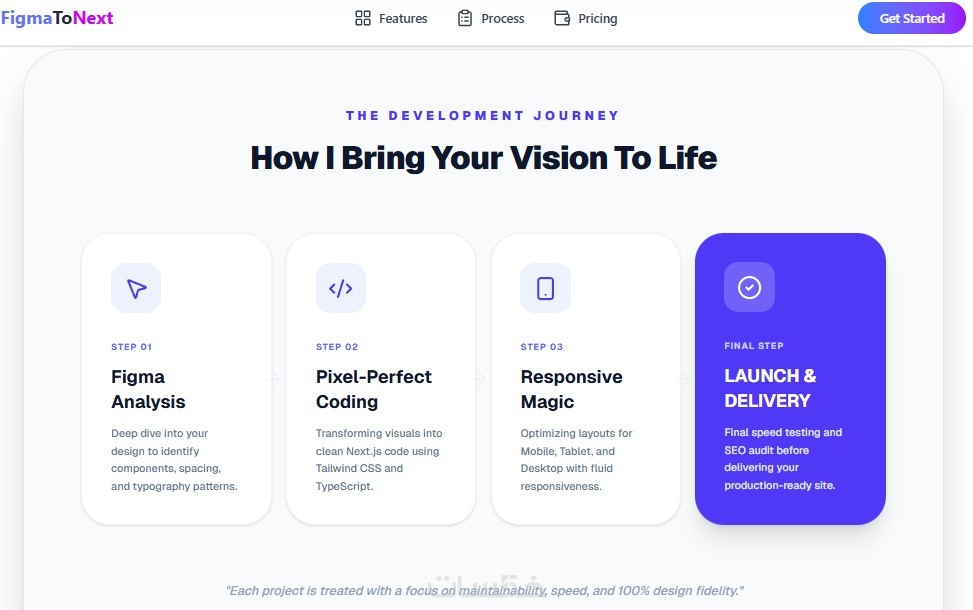 أقدّم خدمة تحويل تصميم Figma إلى صفحة ويب واحدة فقط باستخدام Next.js و Tailwind CSS، مع تنفيذ دقيق مطابق للتصميم (Pixel Perfect) ومتجاوب بالكامل مع جميع أحجام الشاشات.