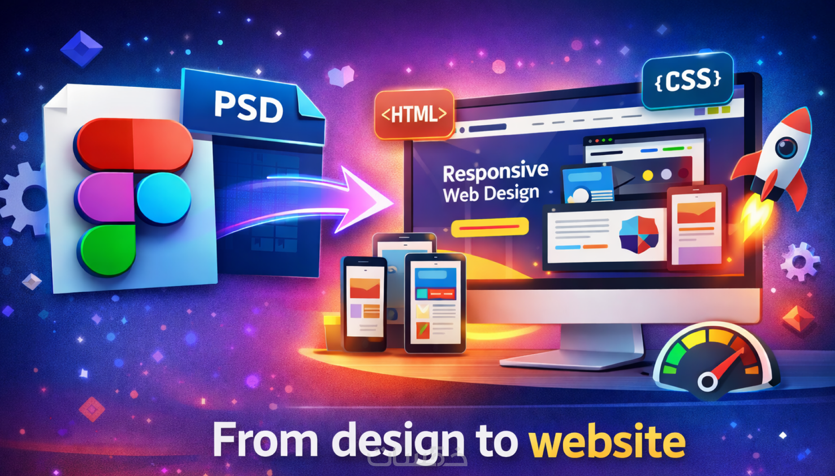 تحويل تصميم Figma إلى صفحة ويب مطابقة تمامًا من حيث الألوان، الخطوط، والمسافات.