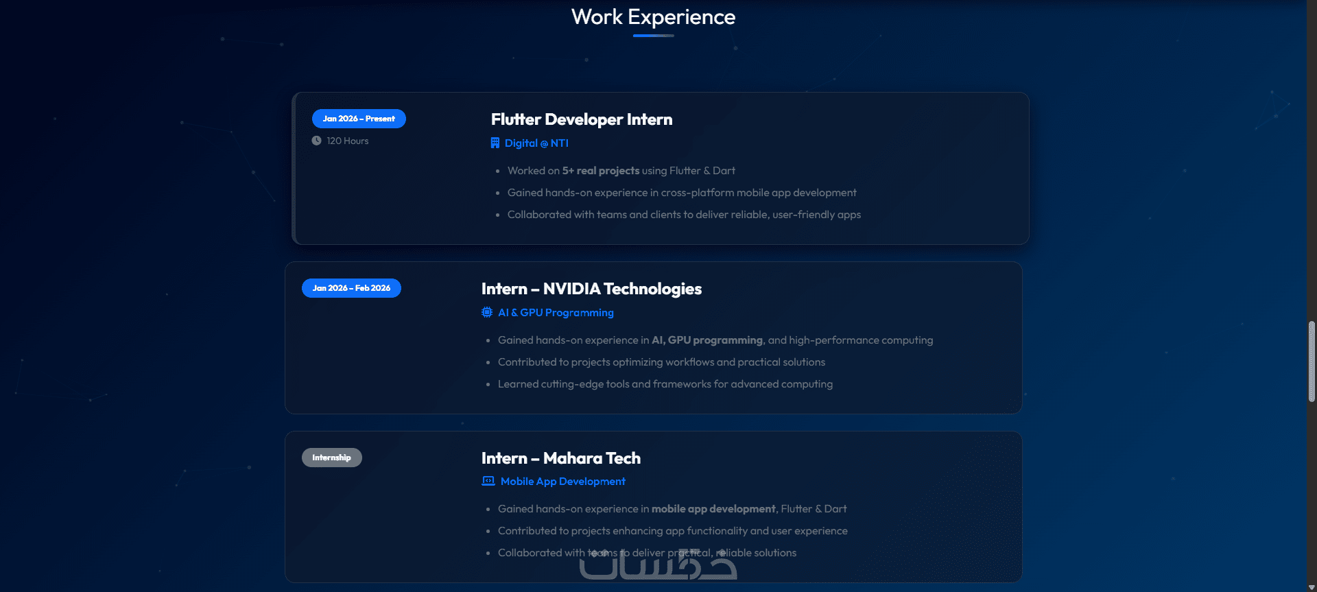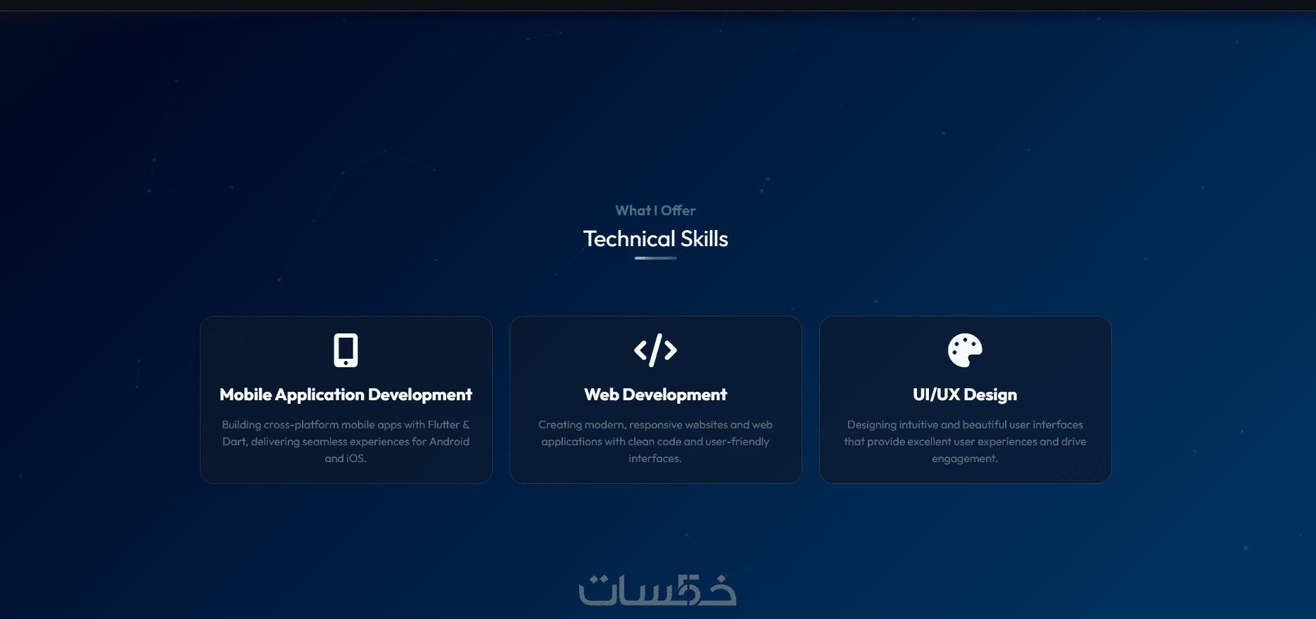 قسم المهارات (Technical Skills): مع عرض رسومي (Progress Bars/Icons) لمهاراتك التقنية.
