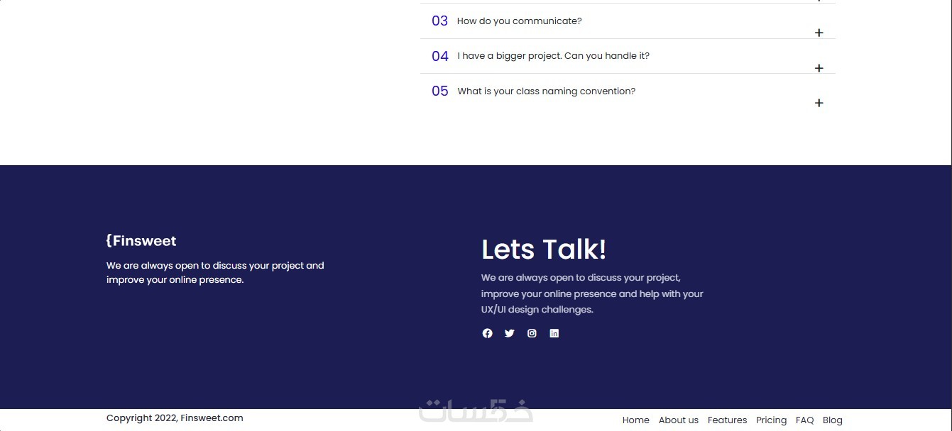 • 4 أقسام (sections) من الصفحة الرئيسية.