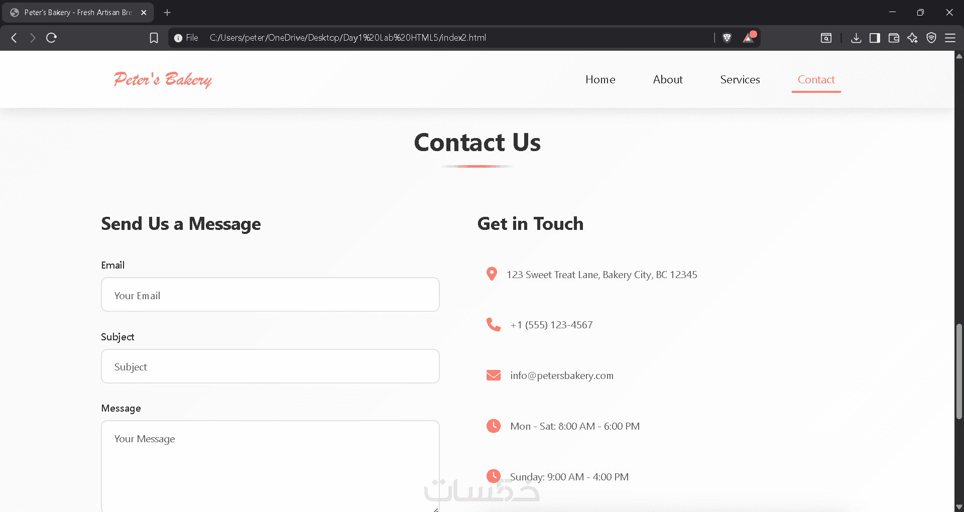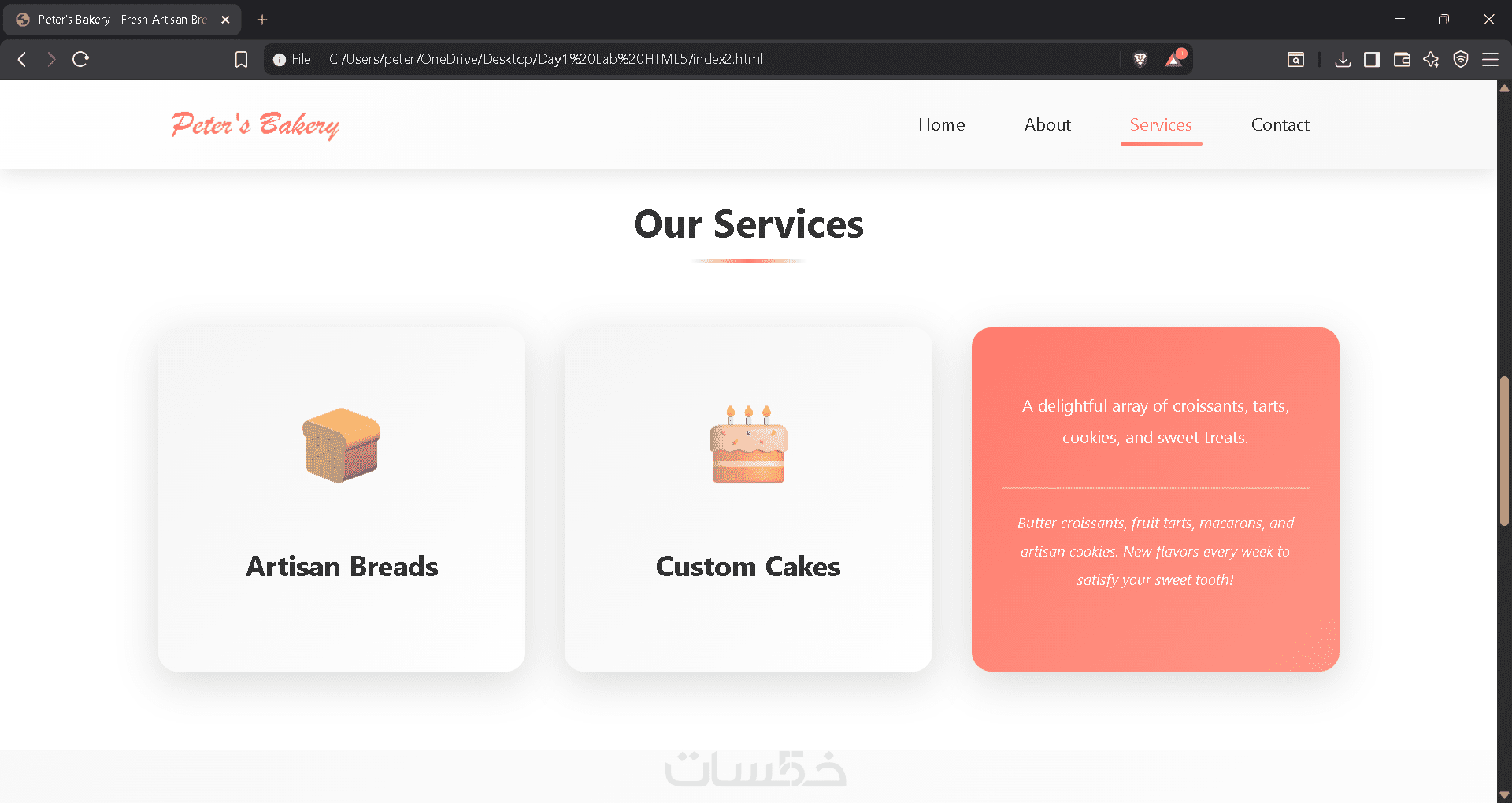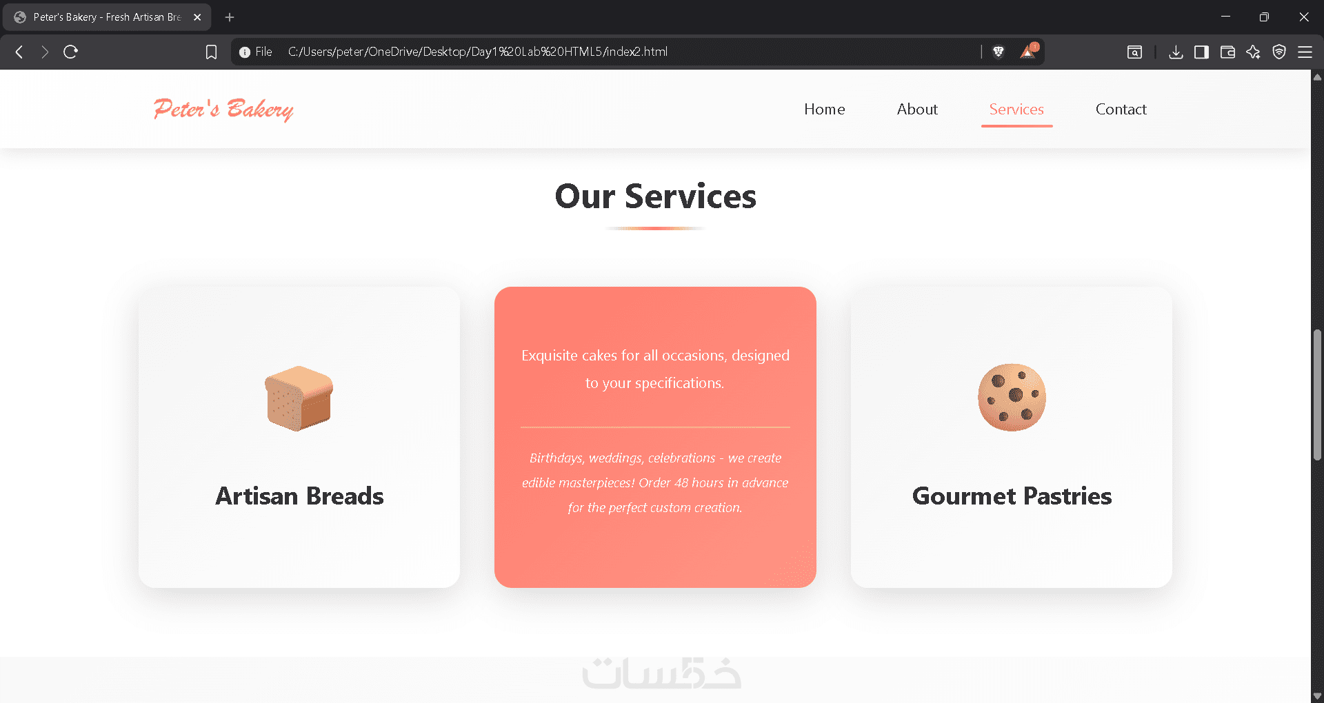 تصميم صفحة واحدة تحتوي على 3 أقسام من اختيارك (مثل: Header, About, Contact).