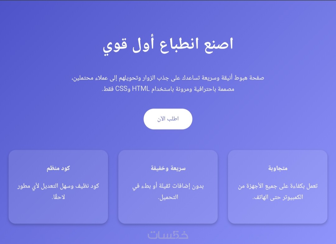 سوف تحصل على صفحة هبوط جاهزة للاستخدام يمكن رفعها فورًا على أي استضافة دون الحاجة لتعديلات إضافية.