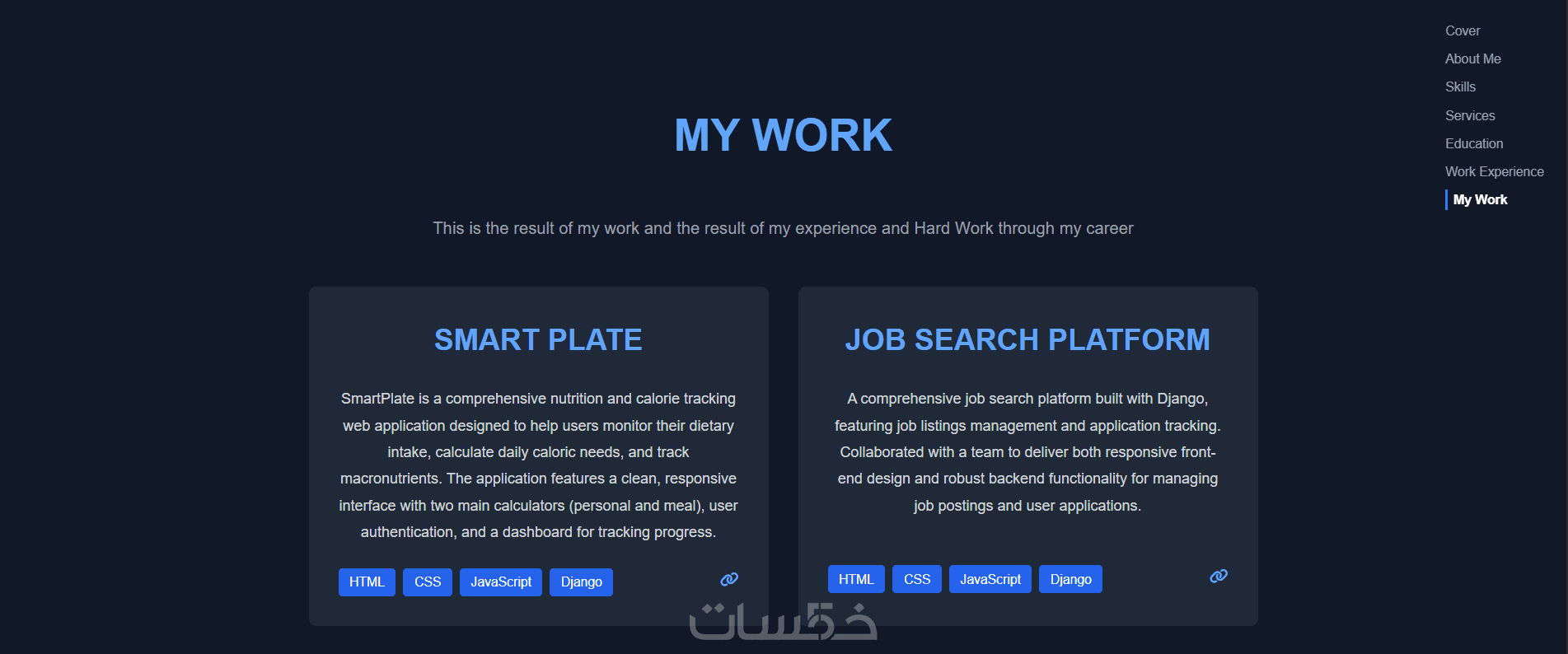 عرض جذاب لأعمالك: قسم خاص لعرض مشاريعك وإبداعاتك مع الصور والتفاصيل التي تبرز مهاراتك.
