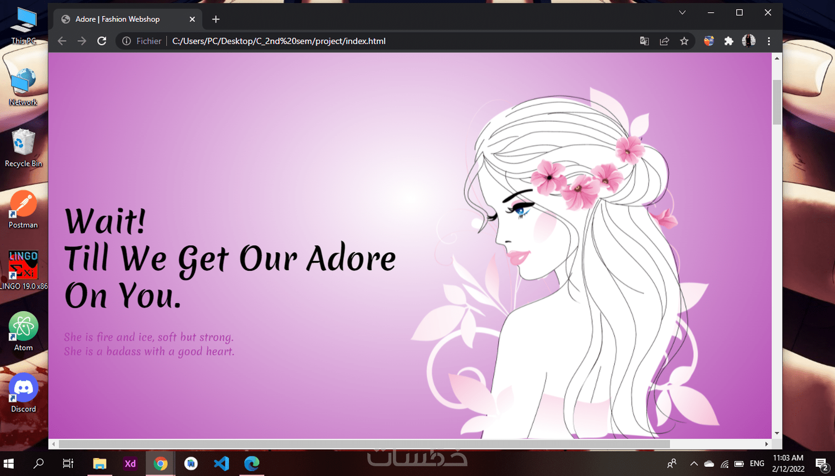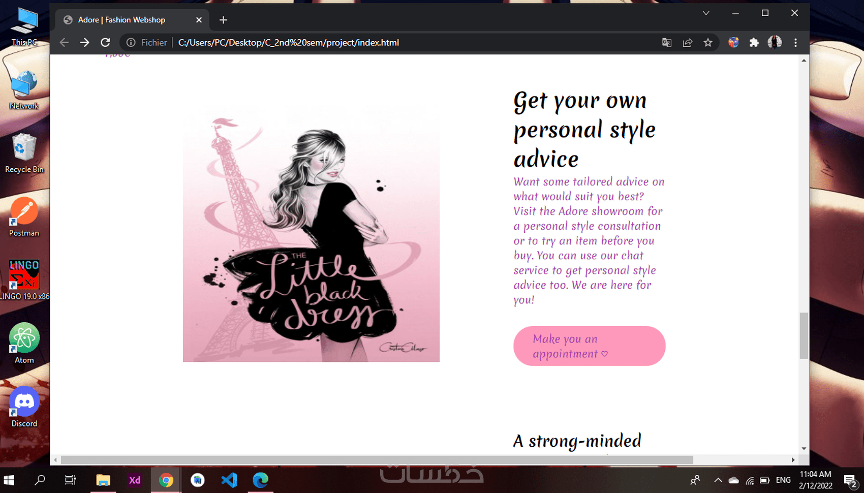 بصفتي طالبة في المعهد العالي لإدارة الأعمال اختصاص تكنولوجيا المعلومات لدي الخبرة الكافية لتصميم واجهة موقع الويب الخاص بك بطريقة احترافية و موثوقة باستخدام التكنولوجات التالية: