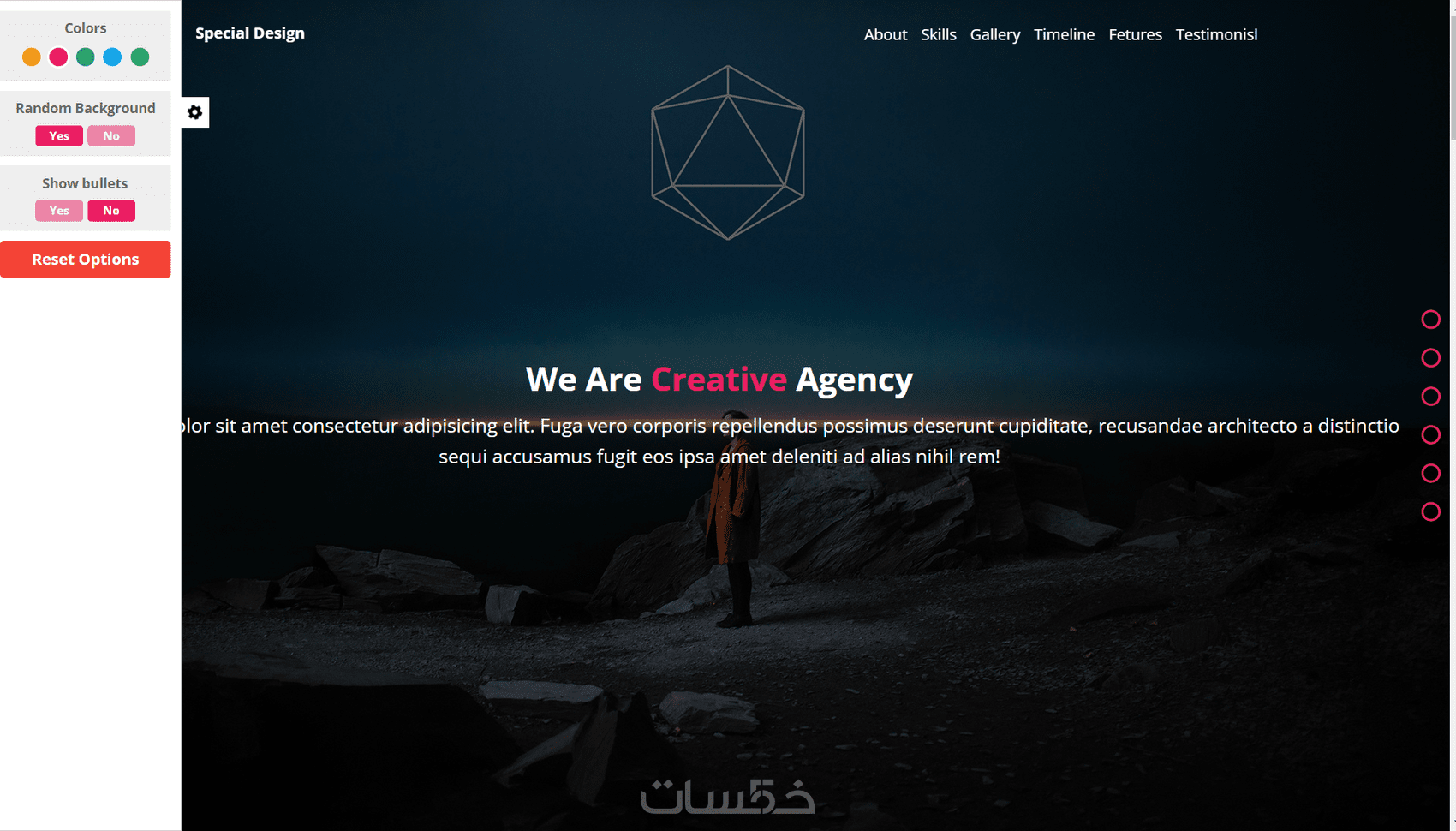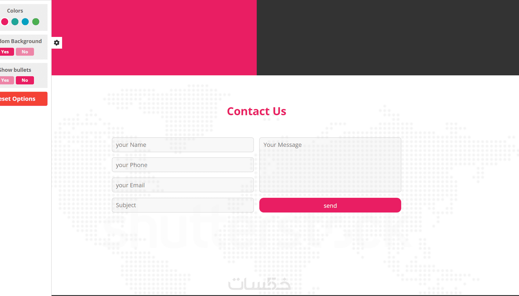 الصفحة تتكون من اربع أقسام (الرئيسية - اتصل بنا - الاراء - الفوتر)
