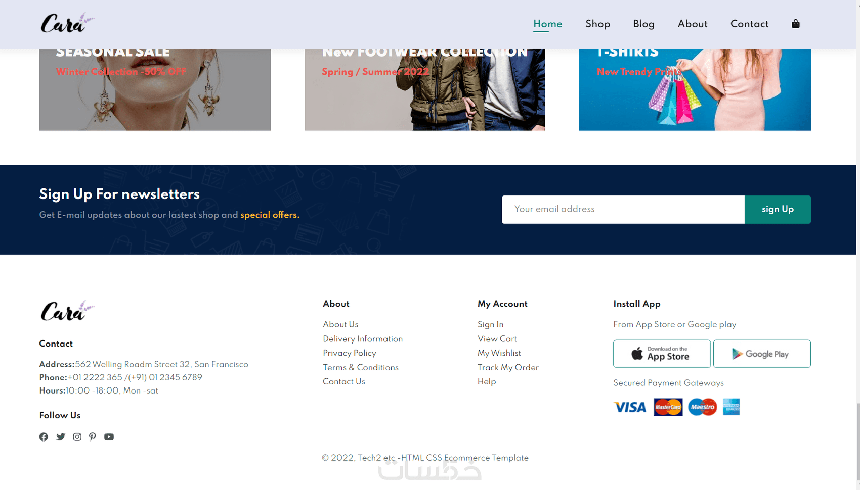 الفوتر: آخر قسم بالموقع يتضمن الروابط والعناوين المهمة.