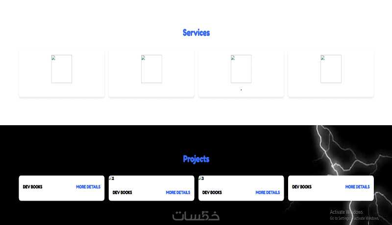 - صفحة واحدة مقسمة الي 4 أقسام (home,services,projects,contact)