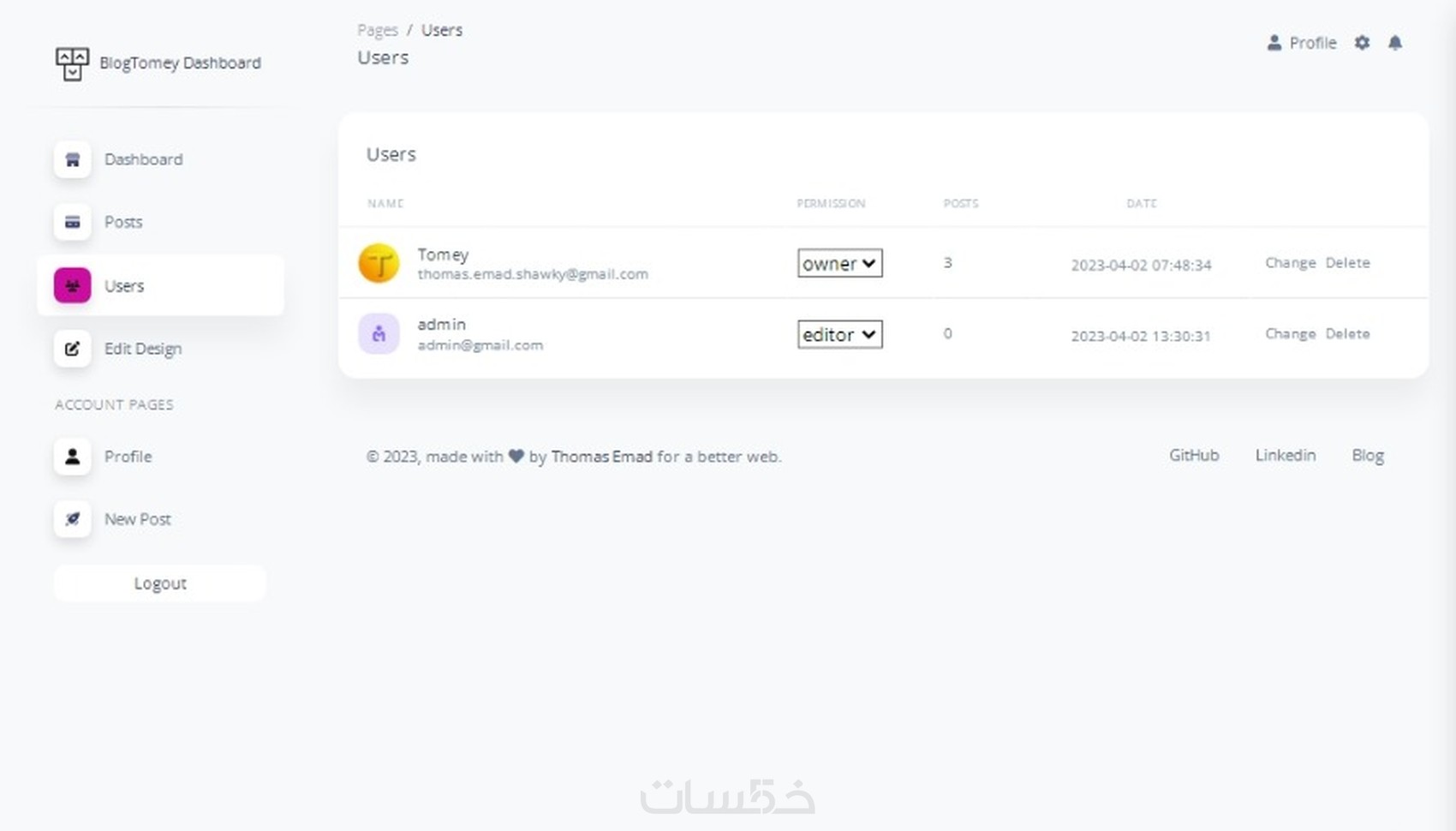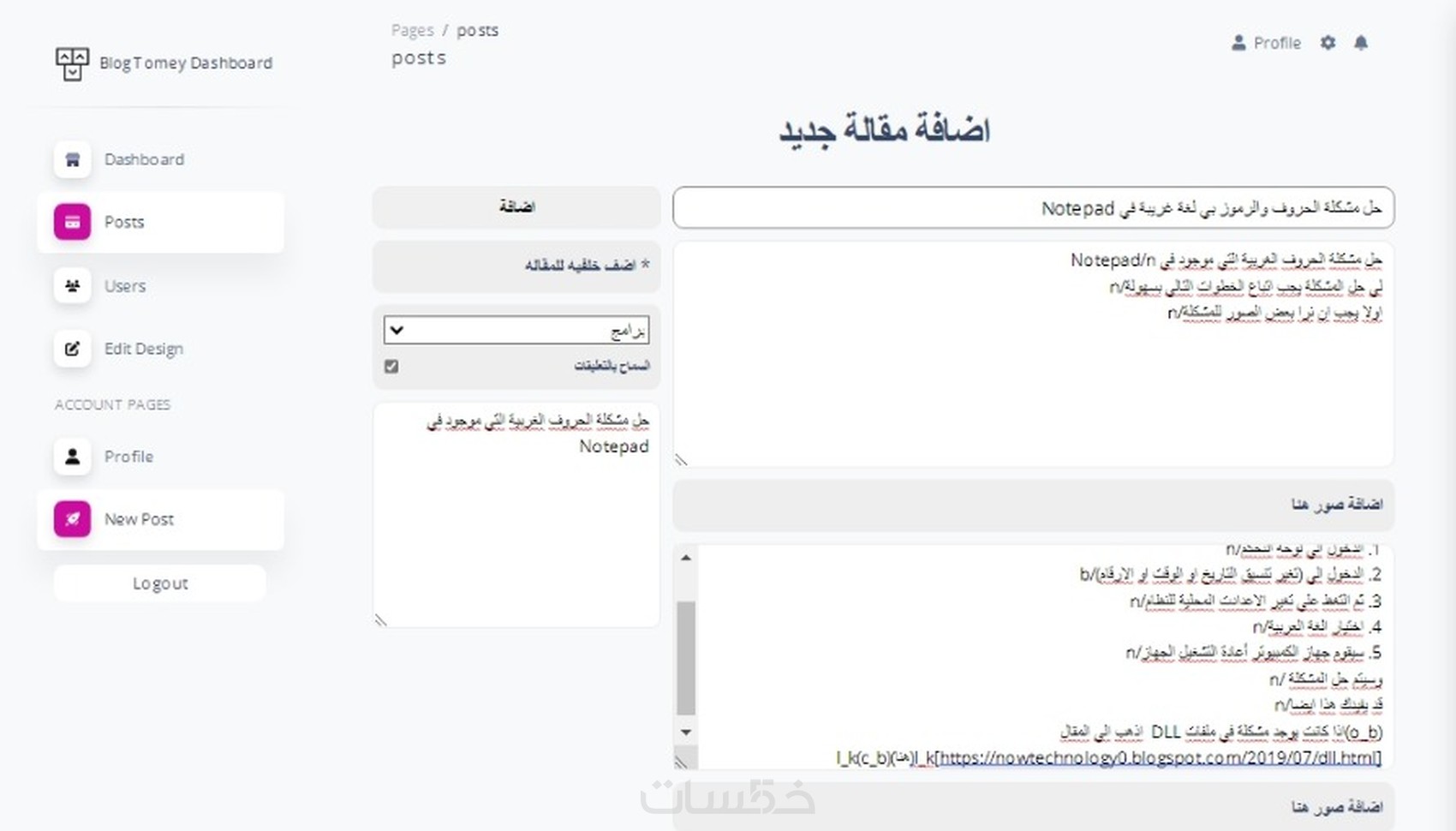 2- هو صفحة Dashboard وهي خاصة بي المحررين والادمن والمالك، لان الموقع بها لكل مستخدم اذنات خاص به حسب نوعه والذي المالك وحده يمكن تغيره.