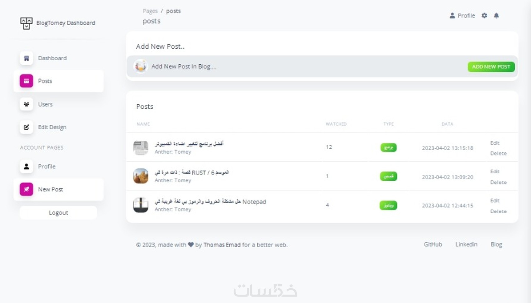 اقدم لكم مدونة BlogTomey، فهي مدونة مثل بلوجر ولكنها موقع ويب .