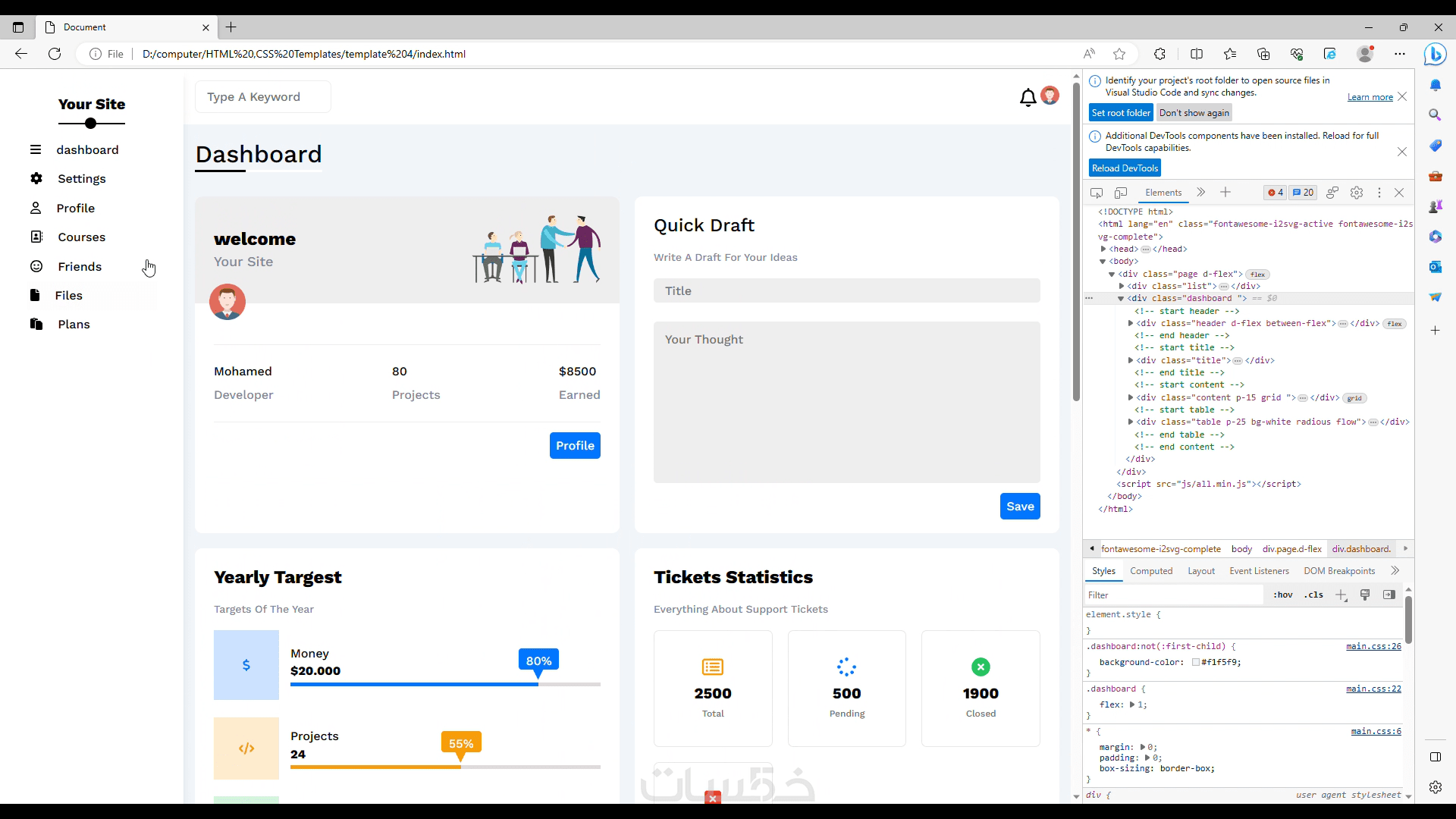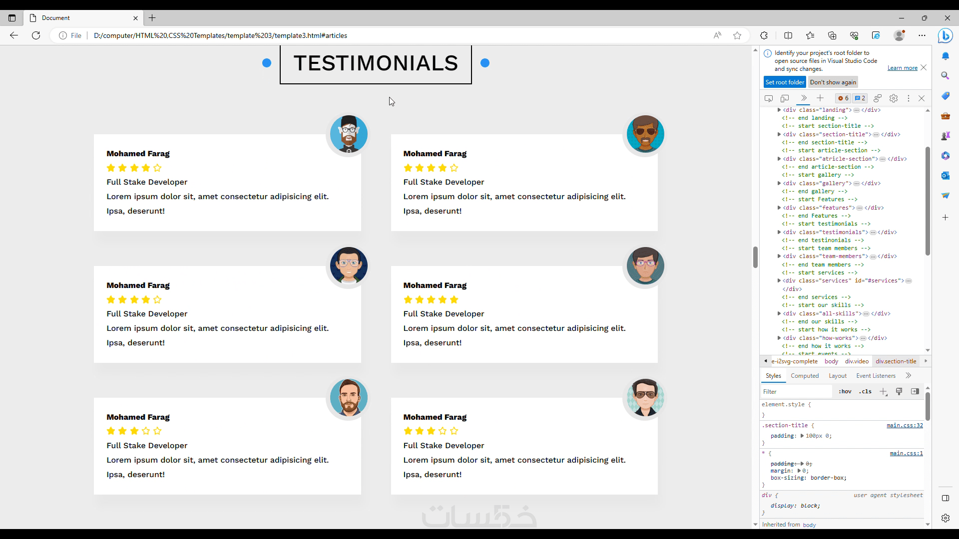 تصميم صفحة html , css مكونة من 4 اقسام .