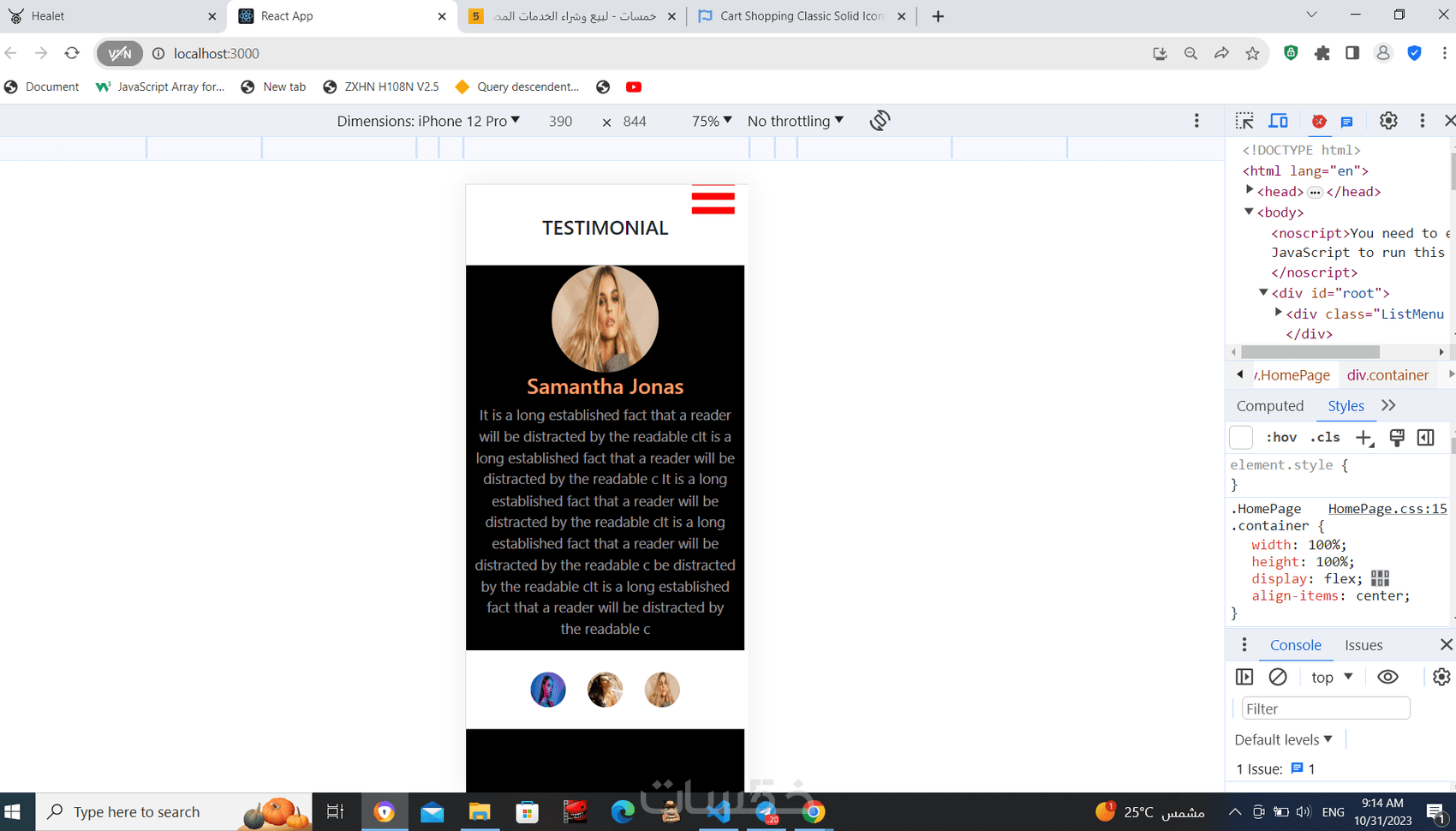 ستطيع عمل ويب سايت احترافي باستخدام react HTML5 and CSS3 and bootstrab javascribt (وواجهه المستخدم احترافيه) واعداد وتنسيق واجهه المستخدم بطريقه احترافيه اذا كان لديك موقع وتريد تنسيقه فاستطيع تنسيقه ب css بطريقه ممتازه وسوف أقوم بأرسال لك الكود مع شرح كامل للكود مع دعم فنى مميز لكم بعد انتهاء الخدمة وايضا responsive فتستطيع تشغيلو عل كل الشاشات