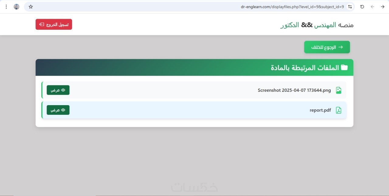 3) دعم رفع ملفات PDF، عروض تقديمية، فيديوهات تعليمية، وغيرها من المواد الدراسية.