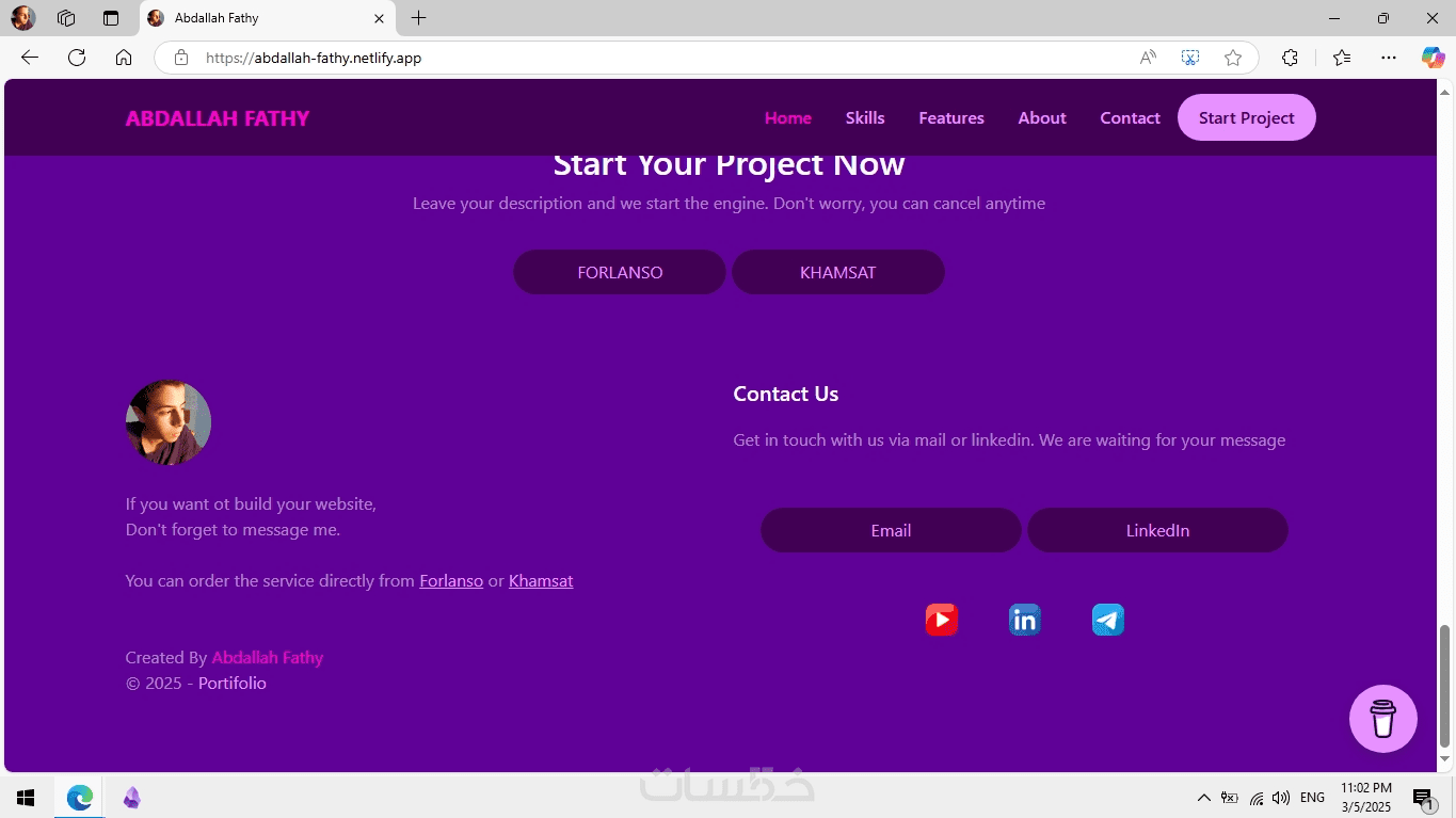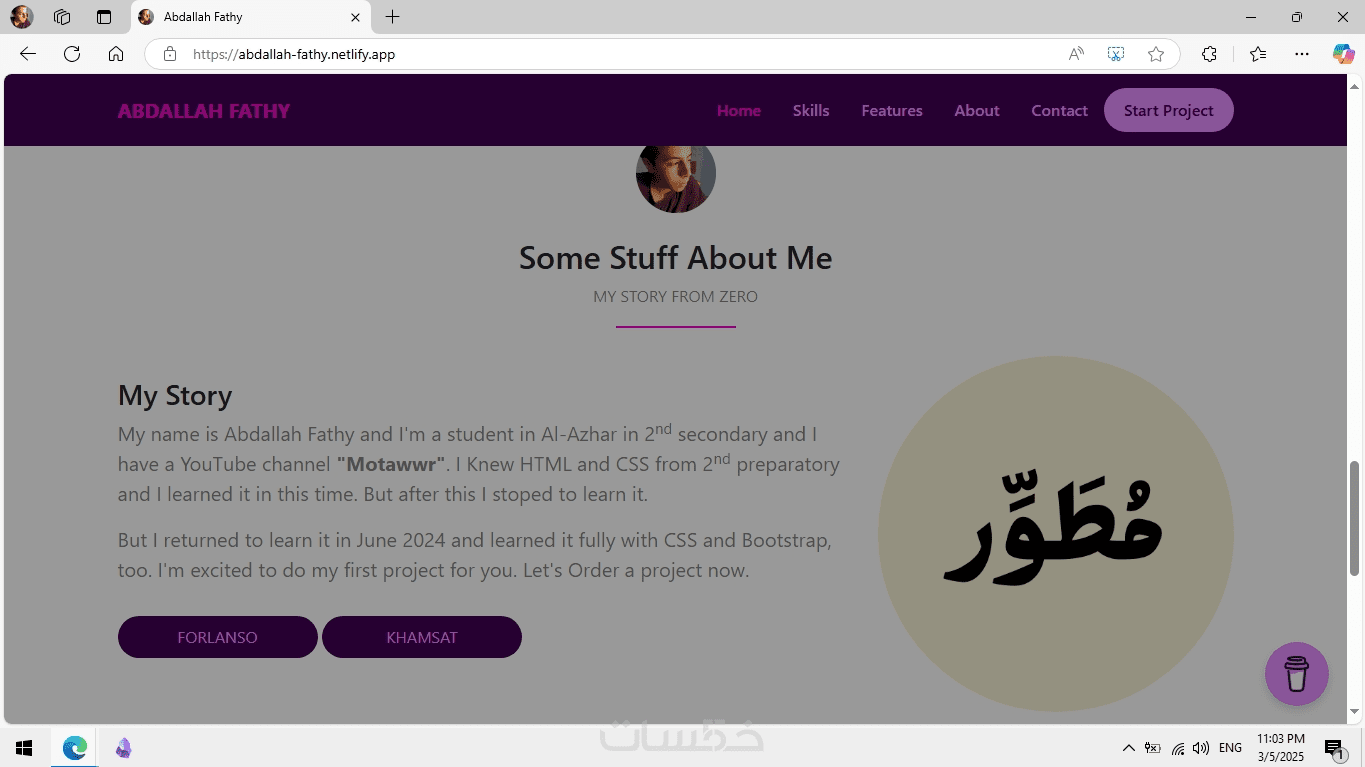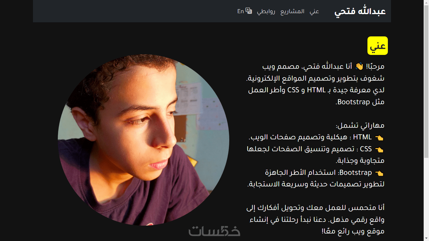 مرحبًا! أنا عبدالله، مطوّر واجهات أمامية متخصص في HTML, CSS, و Bootstrap، أقدّم خدمات تصميم وتطوير مواقع ويب حديثة، متجاوبة، وسريعة التحميل لتناسب جميع الأجهزة. إذا كنت تبحث عن موقع أنيق وسهل الاستخدام، فأنا هنا لتحقيق رؤيتك!