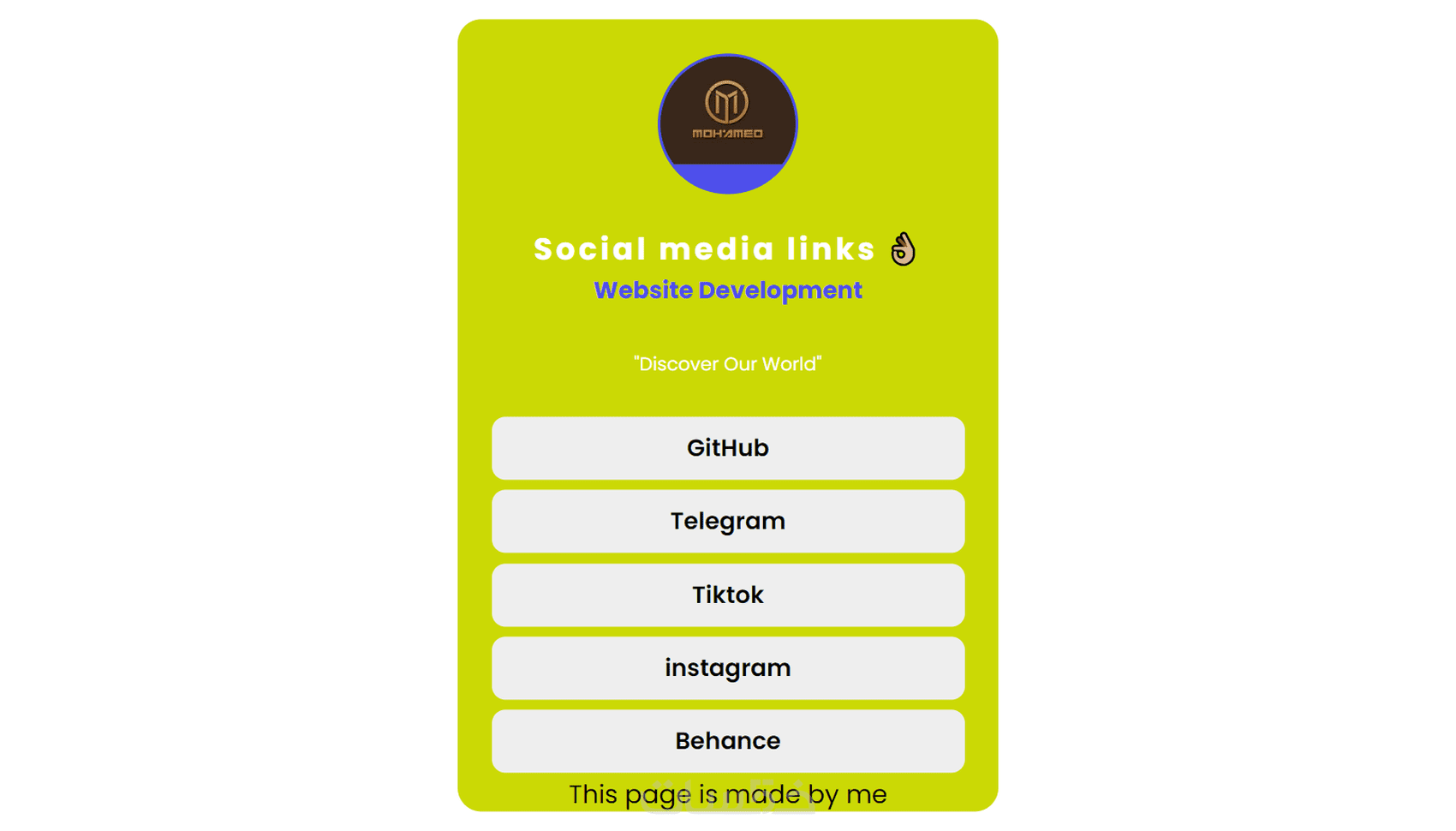 قمت بتطوير واجهة مستخدم أنيقة وفعالة لعرض روابط حساباتك على مختلف منصات التواصل الاجتماعي. تم استخدام أحدث تقنيات الويب، بما في ذلك HTML5 و CSS3 و JavaScript، لضمان تجربة مستخدم سلسة ومتوافقة مع جميع الأجهزة. تتميز هذه الواجهة بـ: