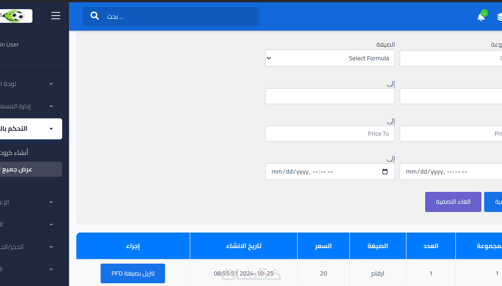 إدارة شاملة: تمكنك اللوحة من إضافة وتحديث وحذف العناصر الأساسية مثل المستخدمين والطلبات والمحتوى بشكل منظم وسهل الوصول.