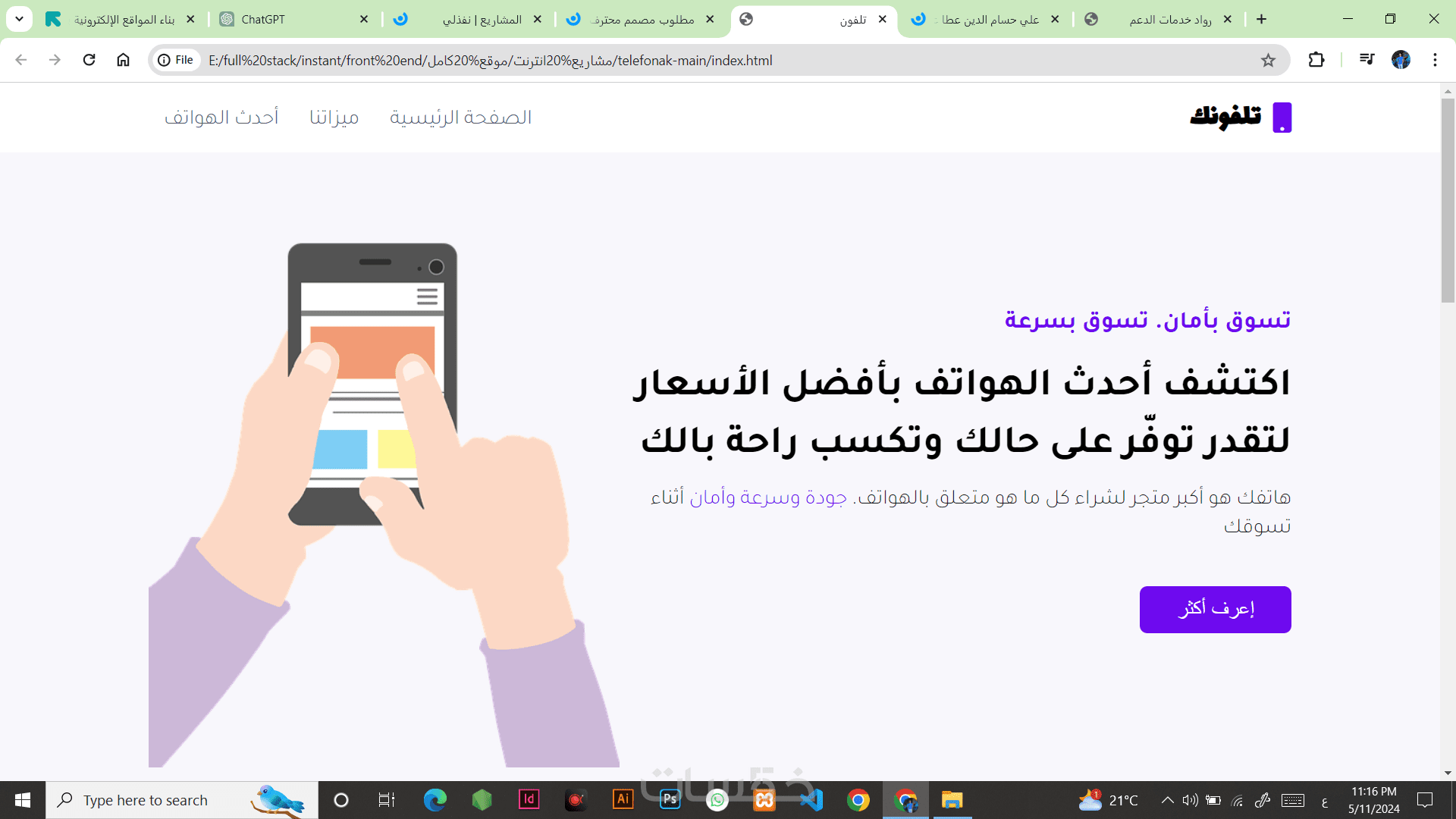 -التقنيات المستخدمة: HTML5، CSS، jQuery، Bootstrap، PHP، وLaravel لضمان تصميم حديث ومتجاوب وسهل الاستخدام.