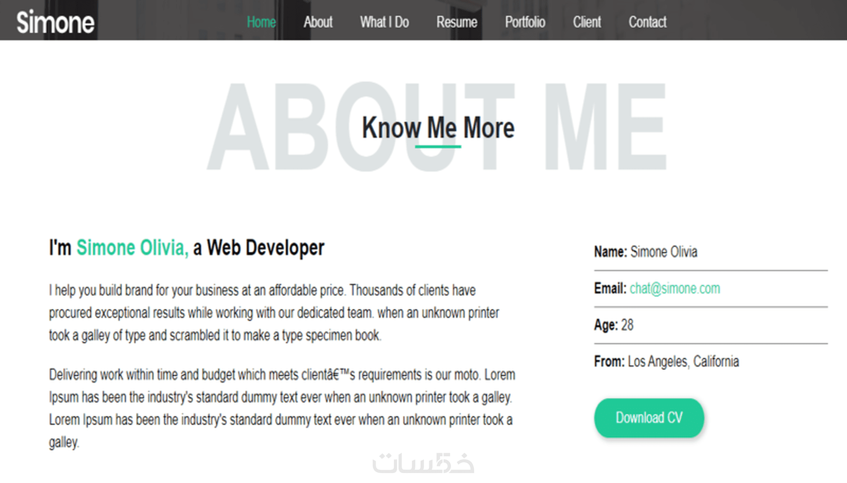 2-جزء رئيسي يعرض نبذة عنك و عن مهاراتك.