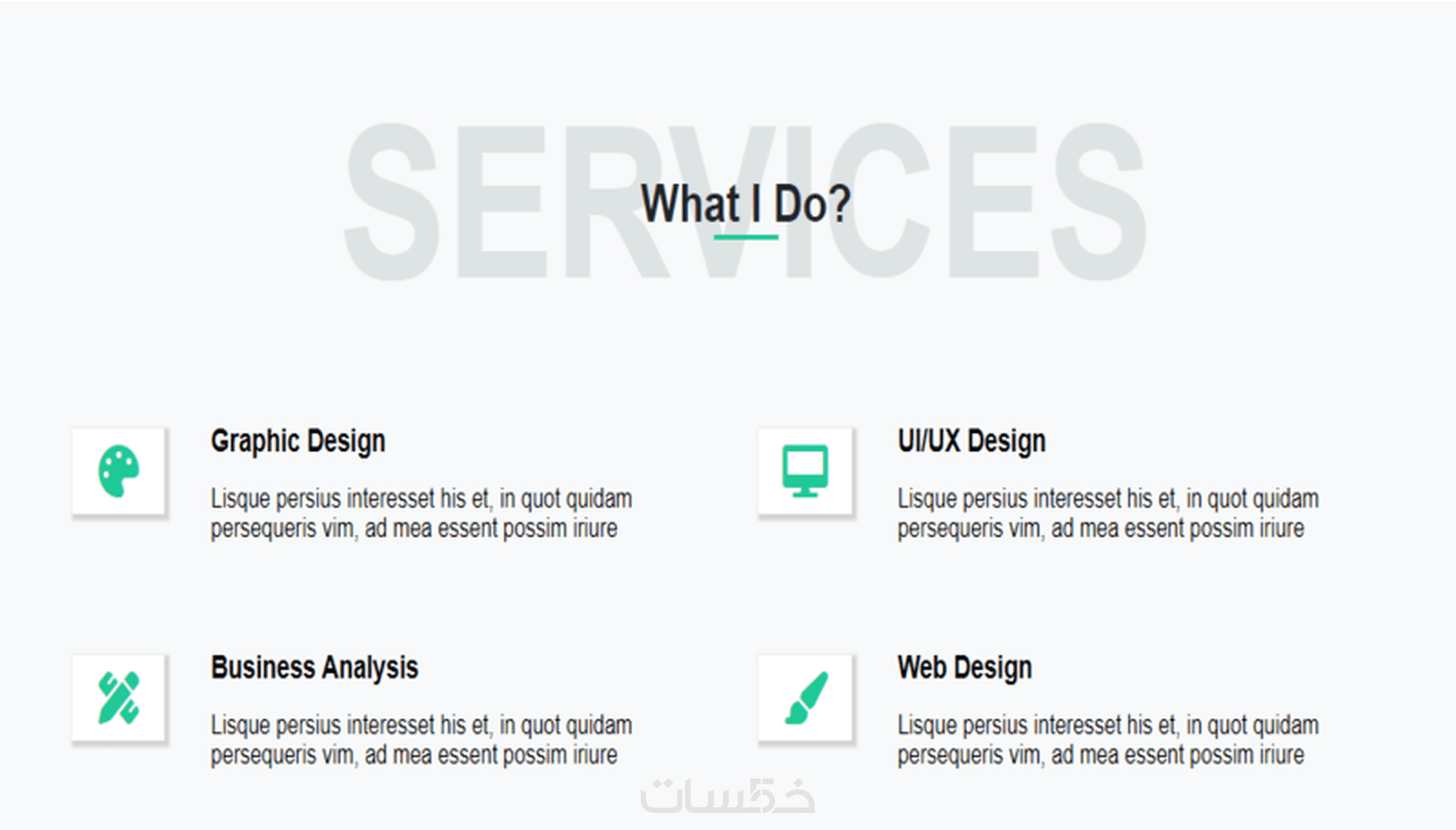 تصميم صفحة برتفوليو واحدة مقابل الخدمة مكونة من اربعة اقسام: