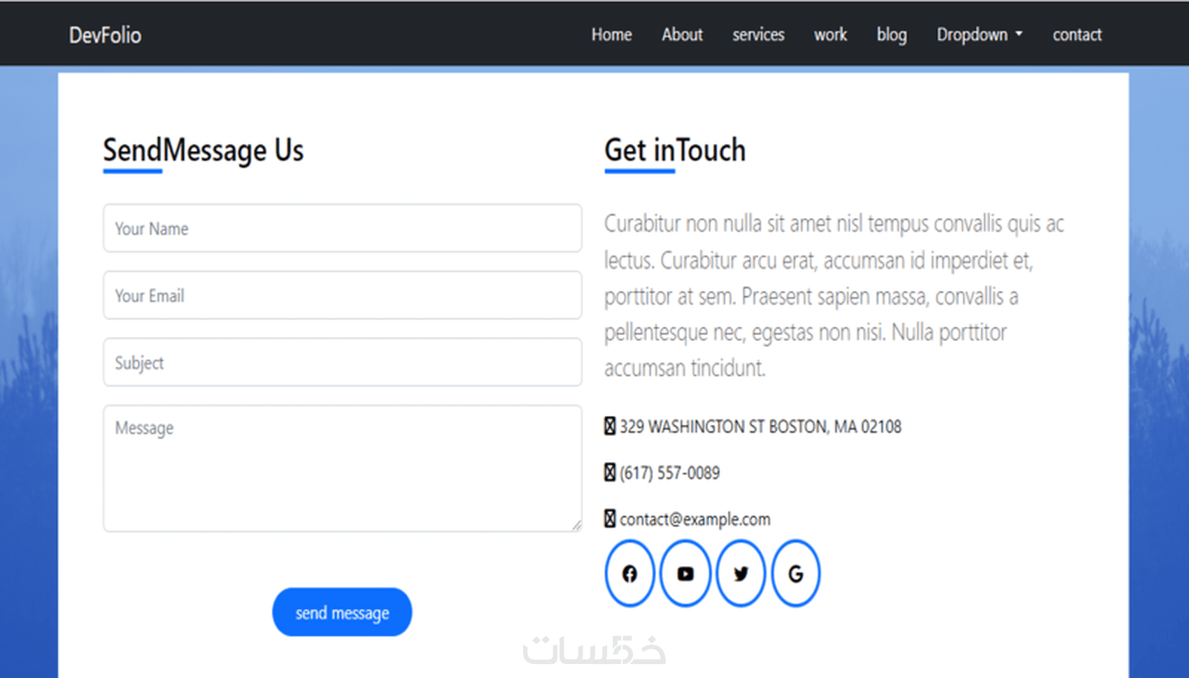 4-قسم التواص يحتوي علي روابط شبكات التواصل الاجتماعي.