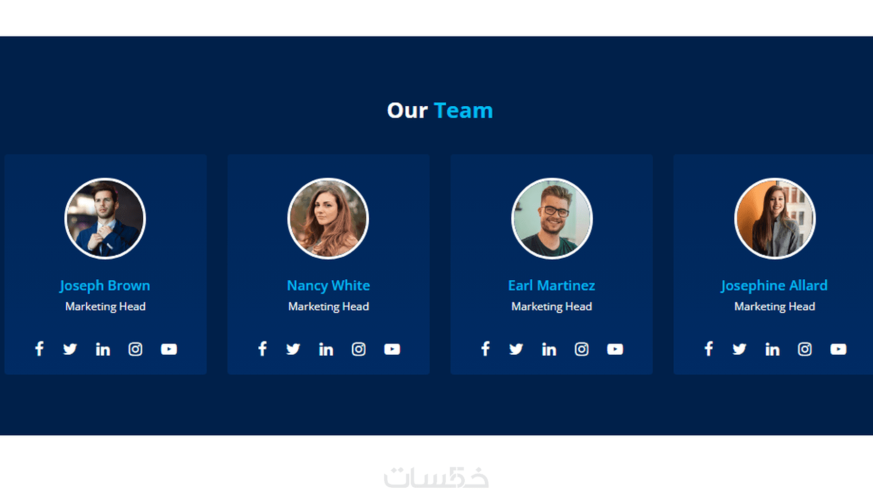 صفحات تعريفية لأعضاء الفريق مع دمج وسائل التواصل الاجتماعي