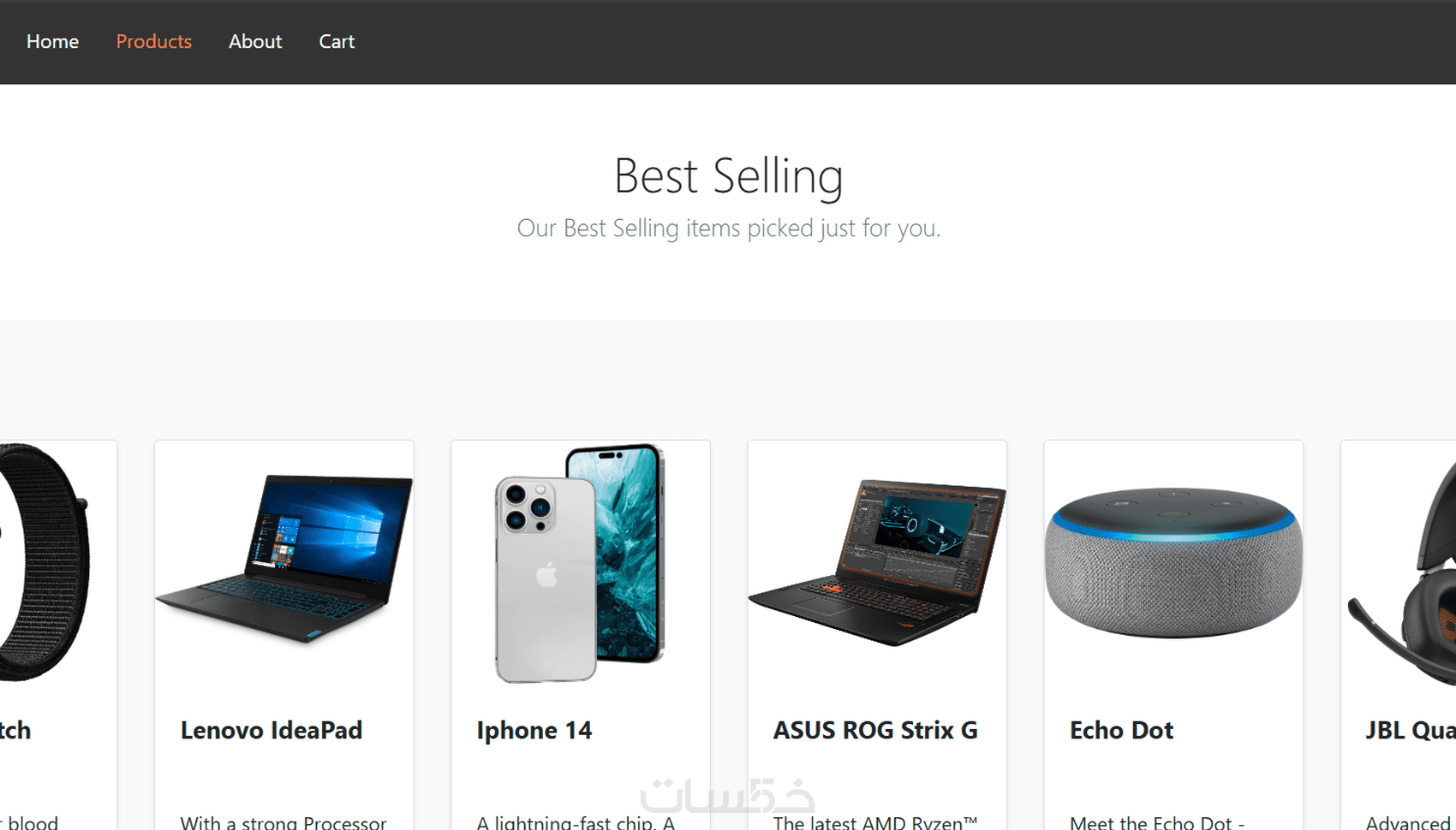 صفحة تعرض قائمة المنتجات مع تفاصيلها (الاسم، الوصف، السعر، الصور).