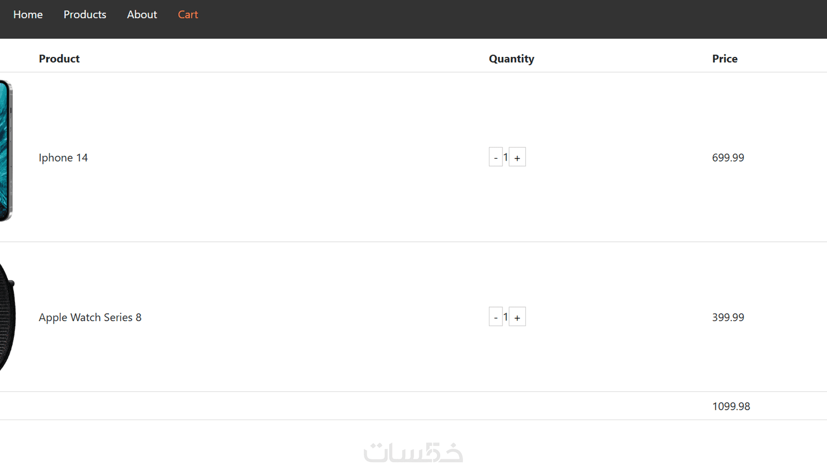 صفحة تفاعلية تُظهر للمستخدم المنتجات التي أضافها إلى السلة مع إمكانية تعديل الكميات أو حذف المنتجات.