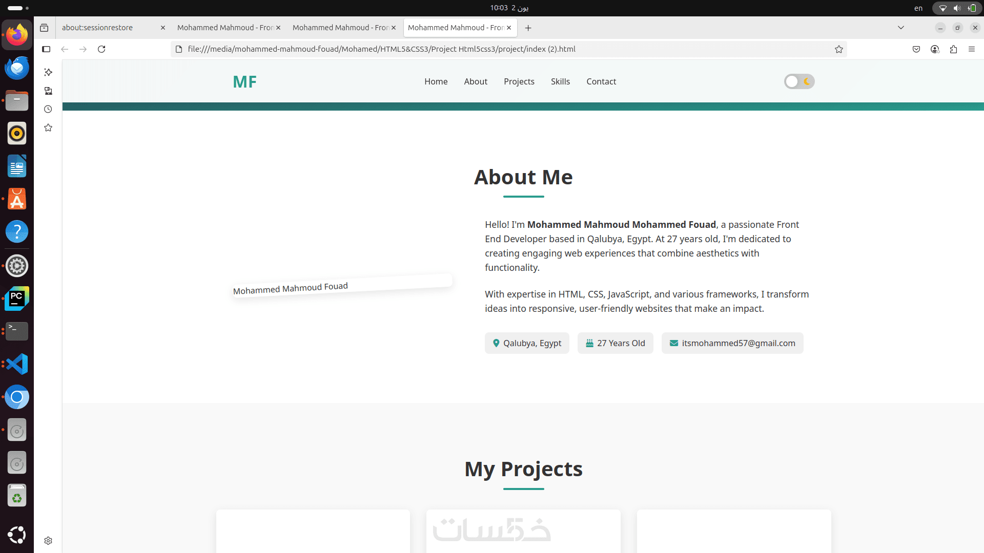 عدد الصفحات: 3 صفحات ويب مثل صفحة رئيسية، صفحة خدمات، وصفحة تواصل.