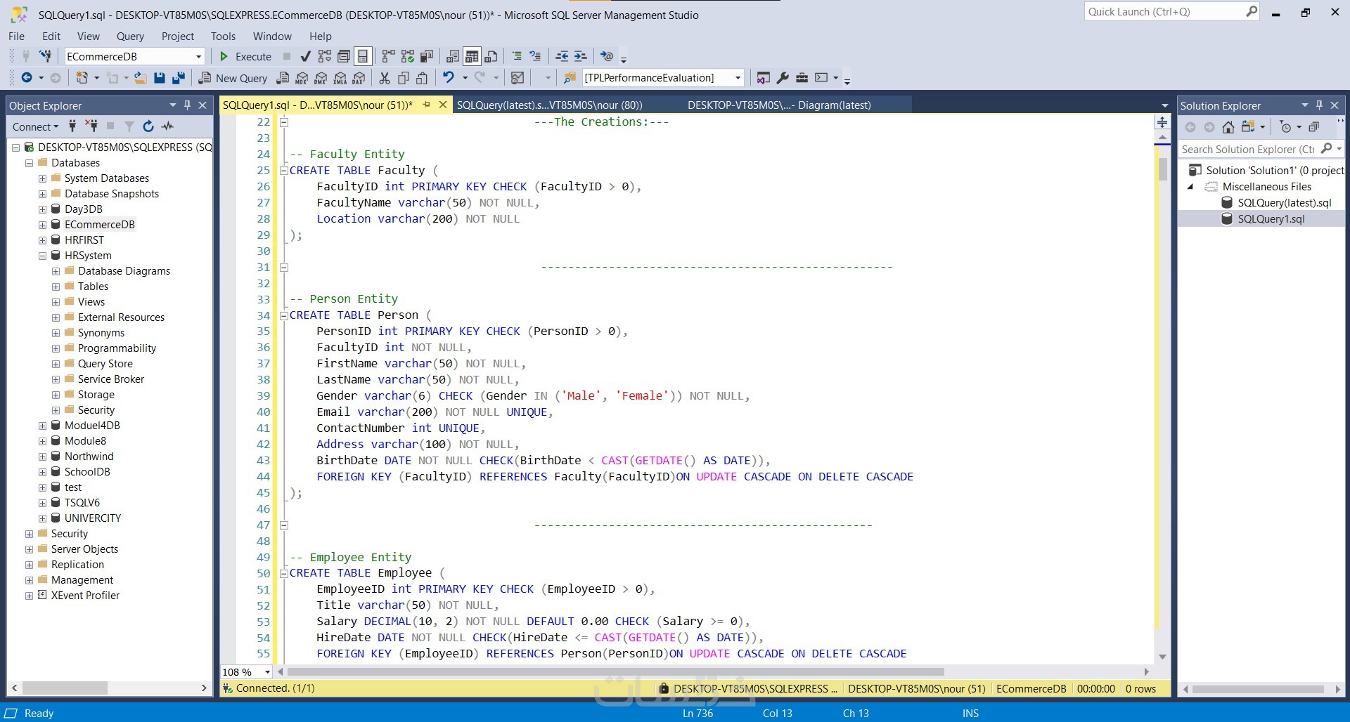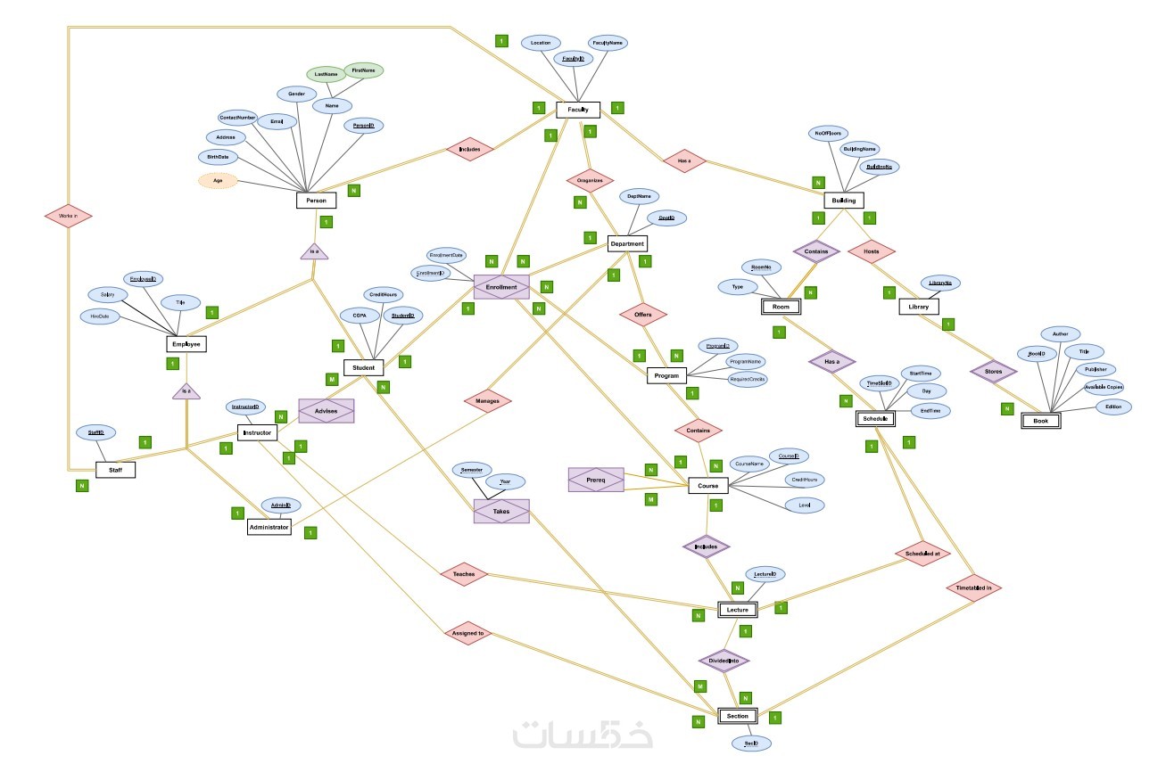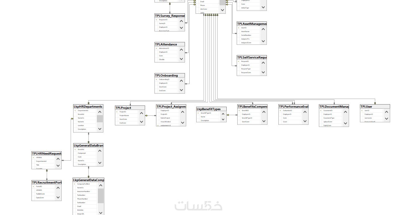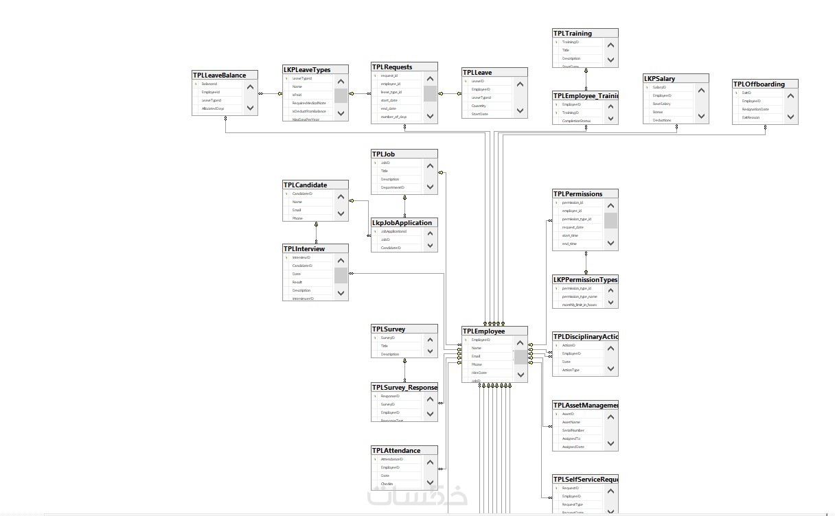تصميم جداول قاعدة البيانات (SQL) مع علاقات دقيقة.