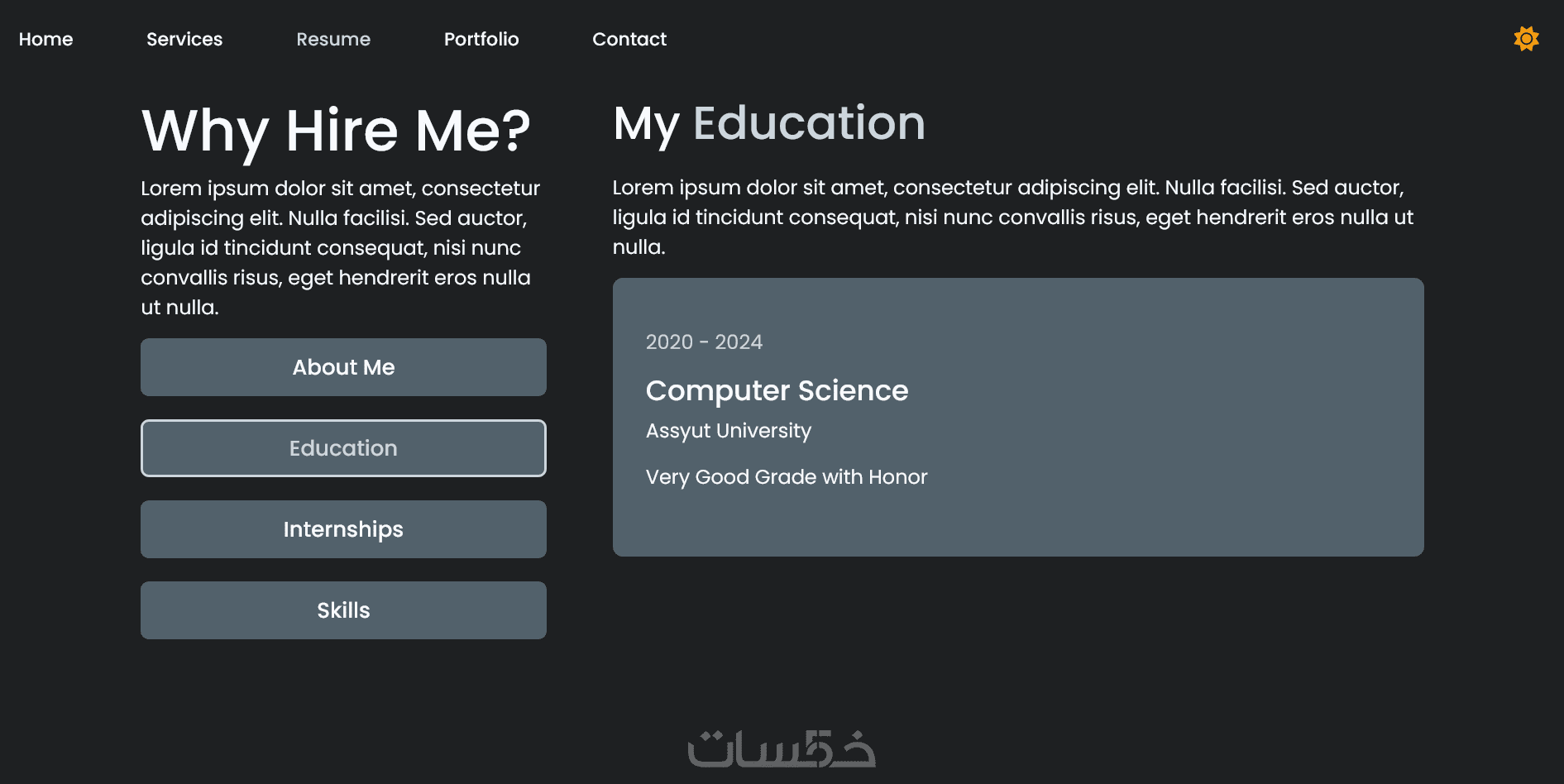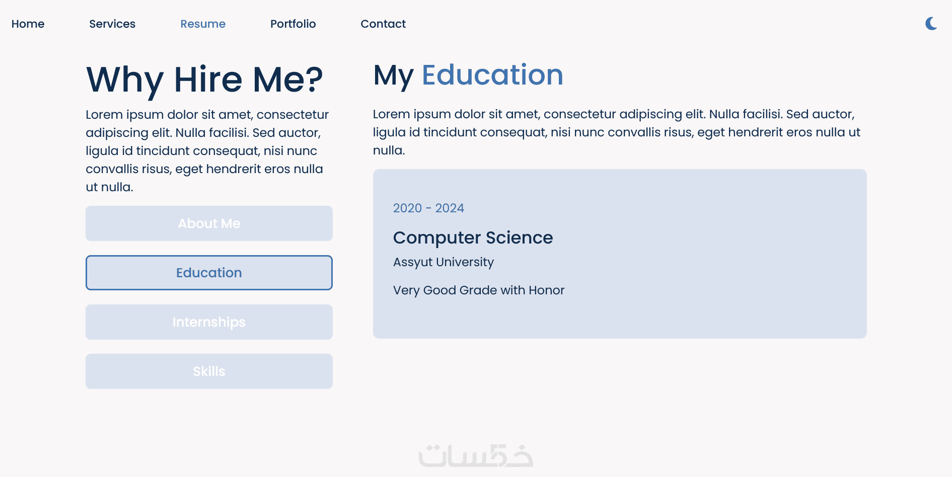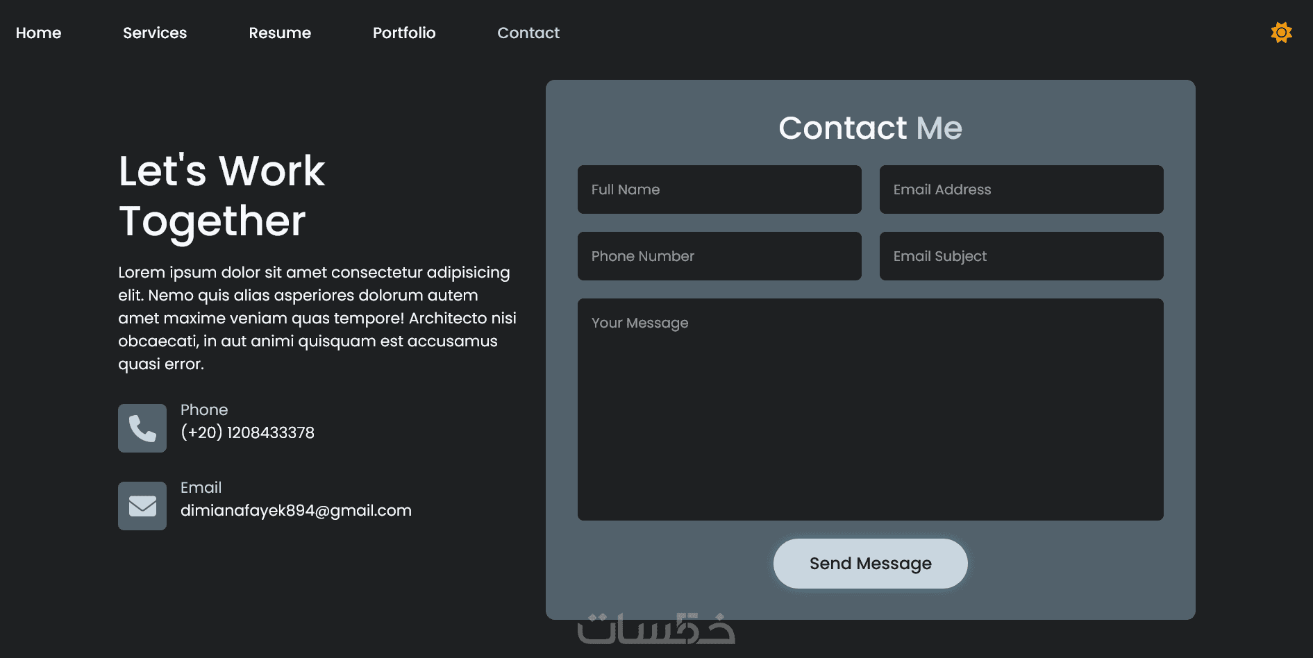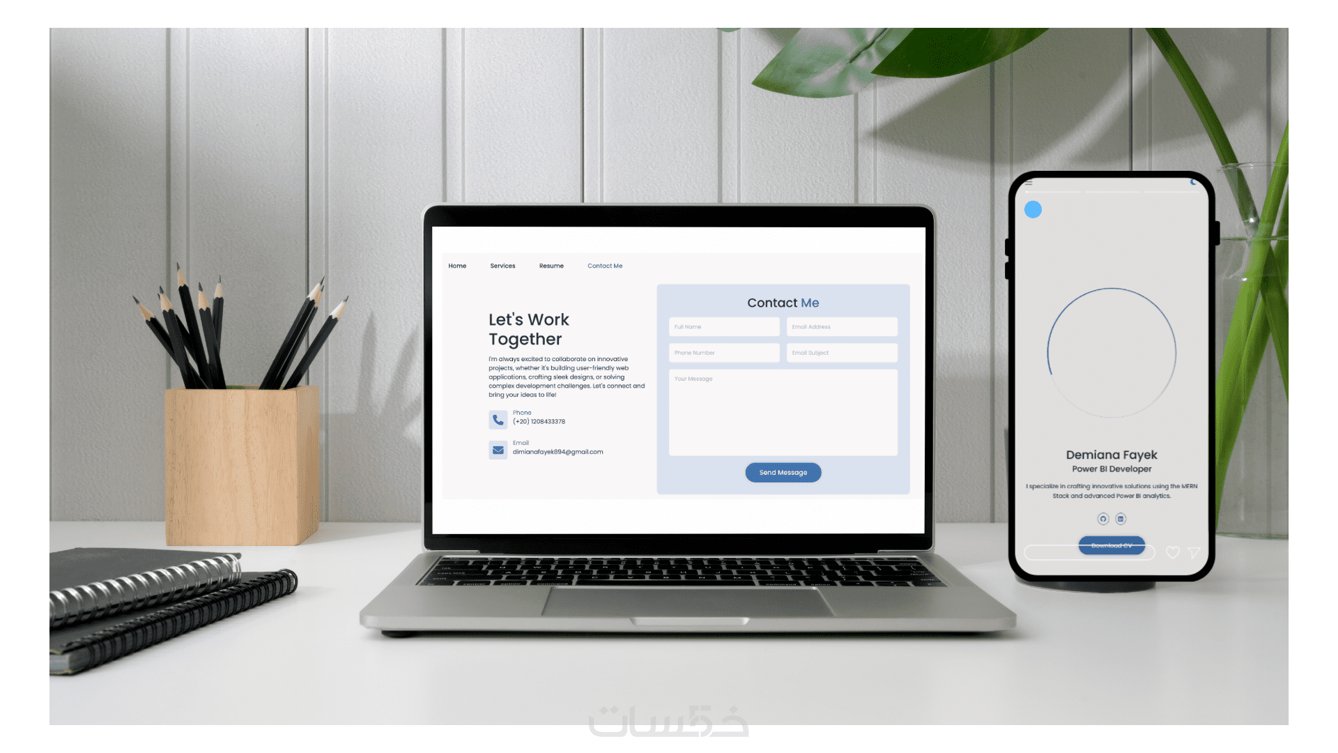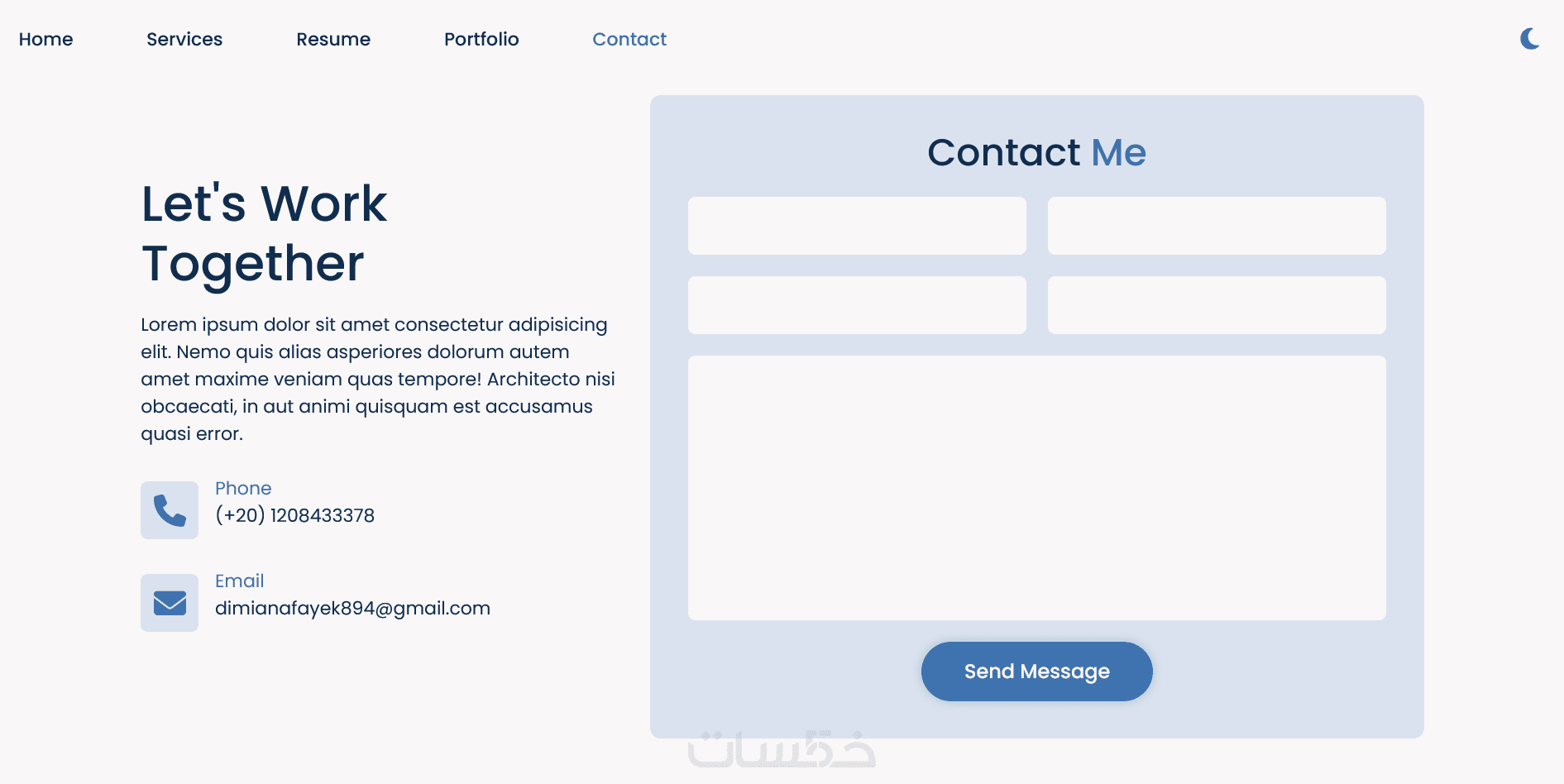 وسائل التواصل – معلومات الاتصال وروابط حساباتك المهنية مثل GitHub وLinkedIn.