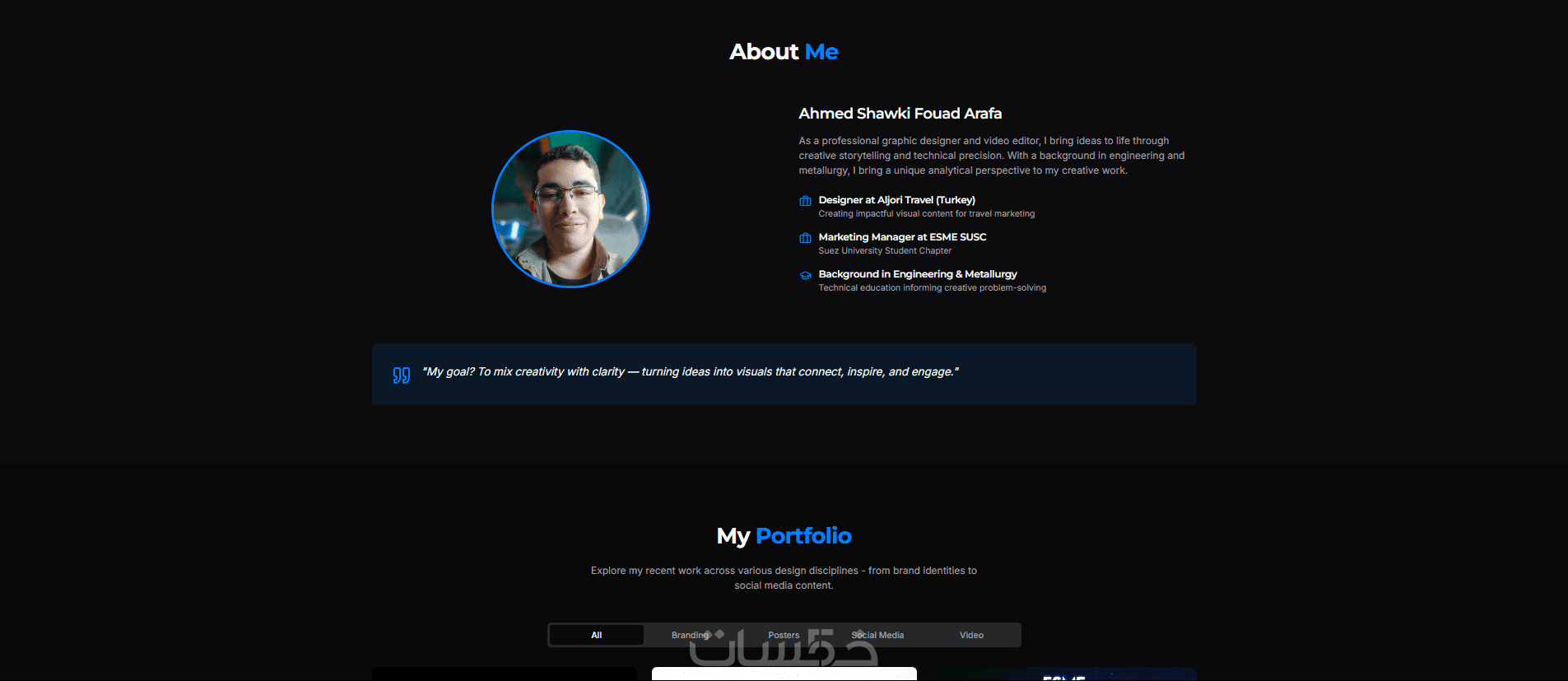 أنا أحمد، متخصص في تطوير واجهات المواقع باستخدام HTML وCSS وJavaScript، أقدّم لك خدمة تصميم صفحة تعريفية أو Landing Page بتصميم جذّاب، منظم، ومتوافق مع جميع الأجهزة والشاشات.
