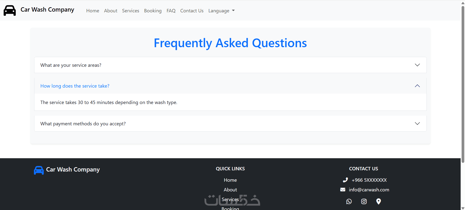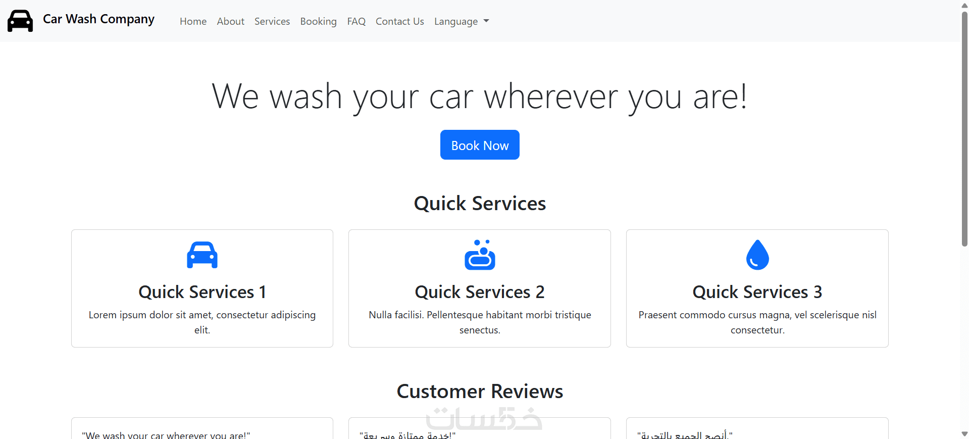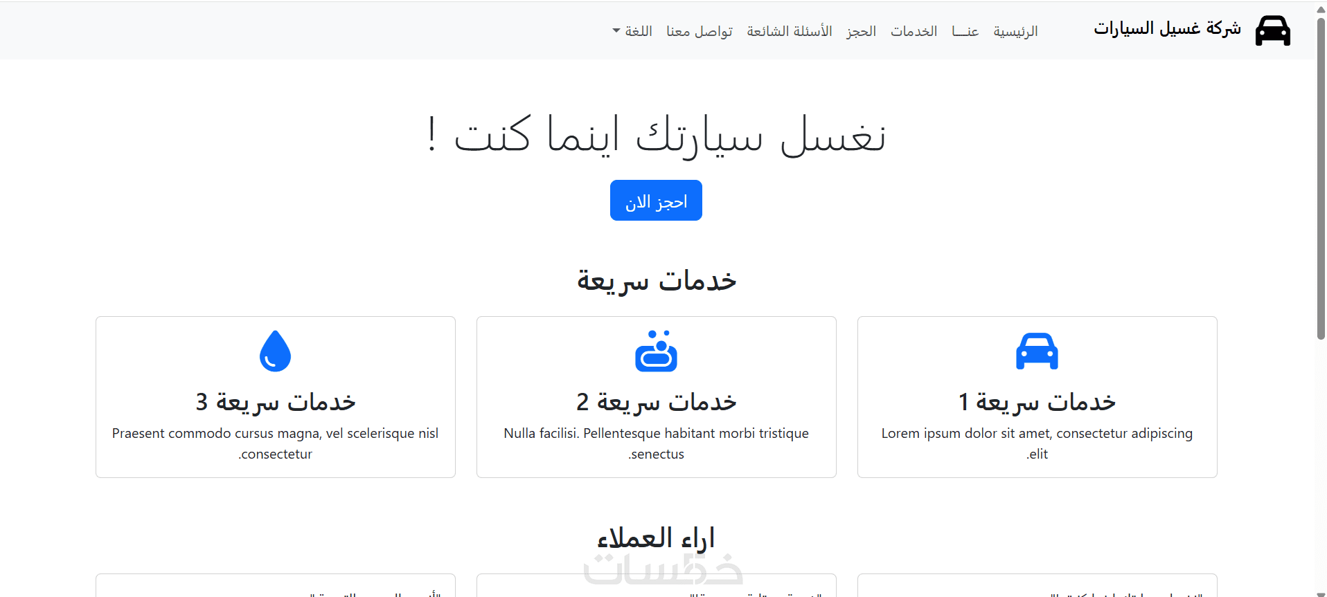 نموذج حجز متكامل (اسم، رقم الهاتف، نوع السيارة، التاريخ، الوقت، الملاحظات).