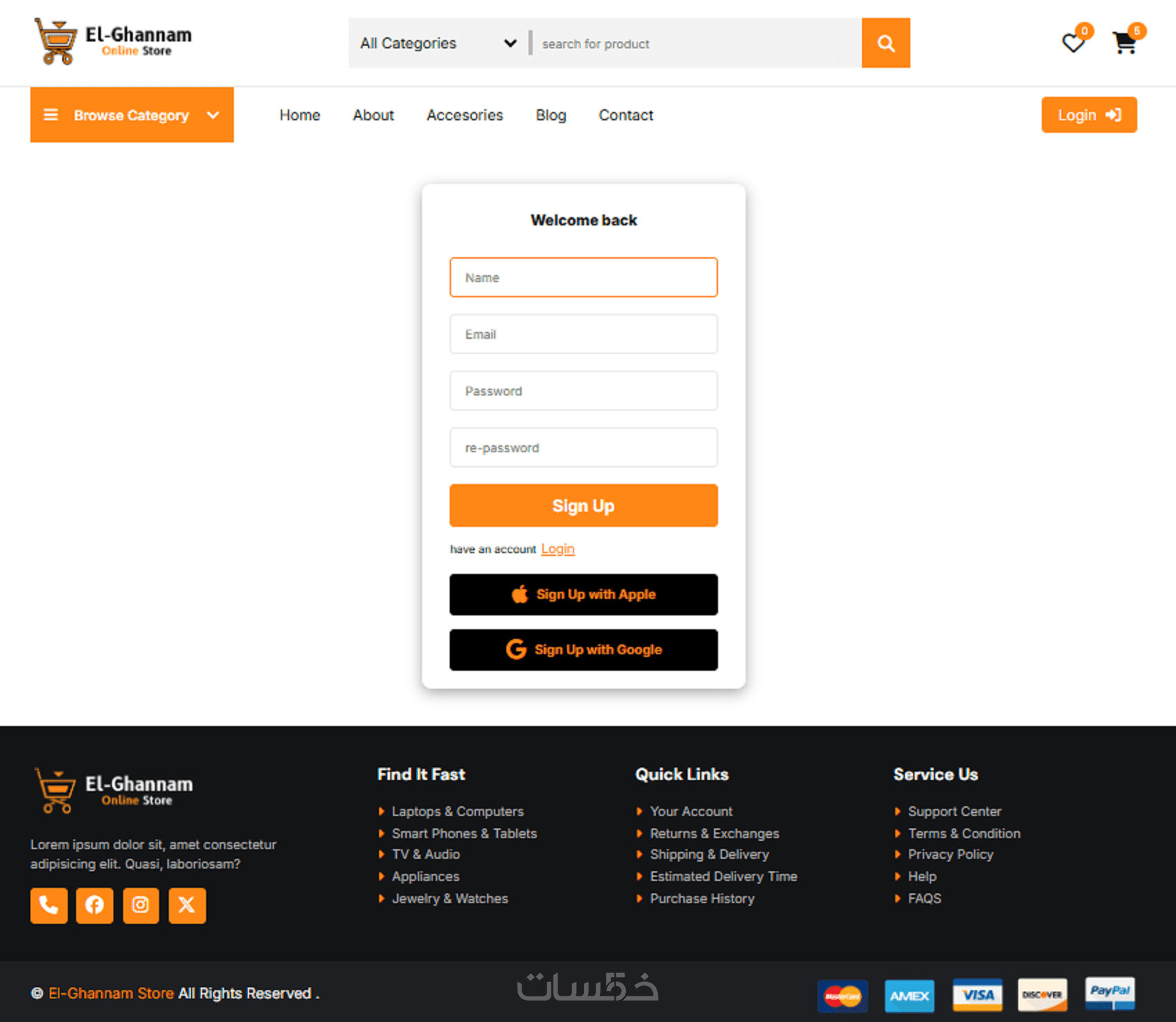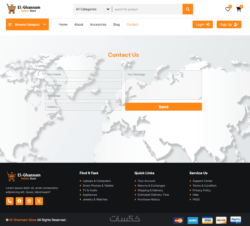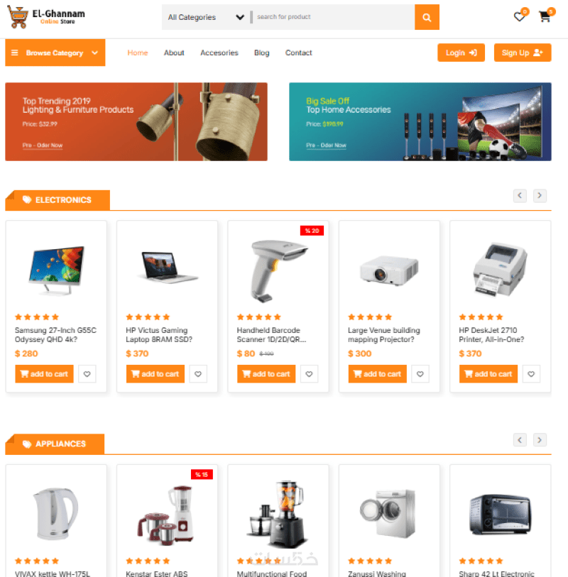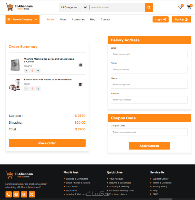 انشاء الواجهة الامامية (frontend) لموقع الكترونى كامل يتكون من 6 او 7 صفحات مع امكانية اضافة الواجهة الخلفية (backend) كاملة للموقع