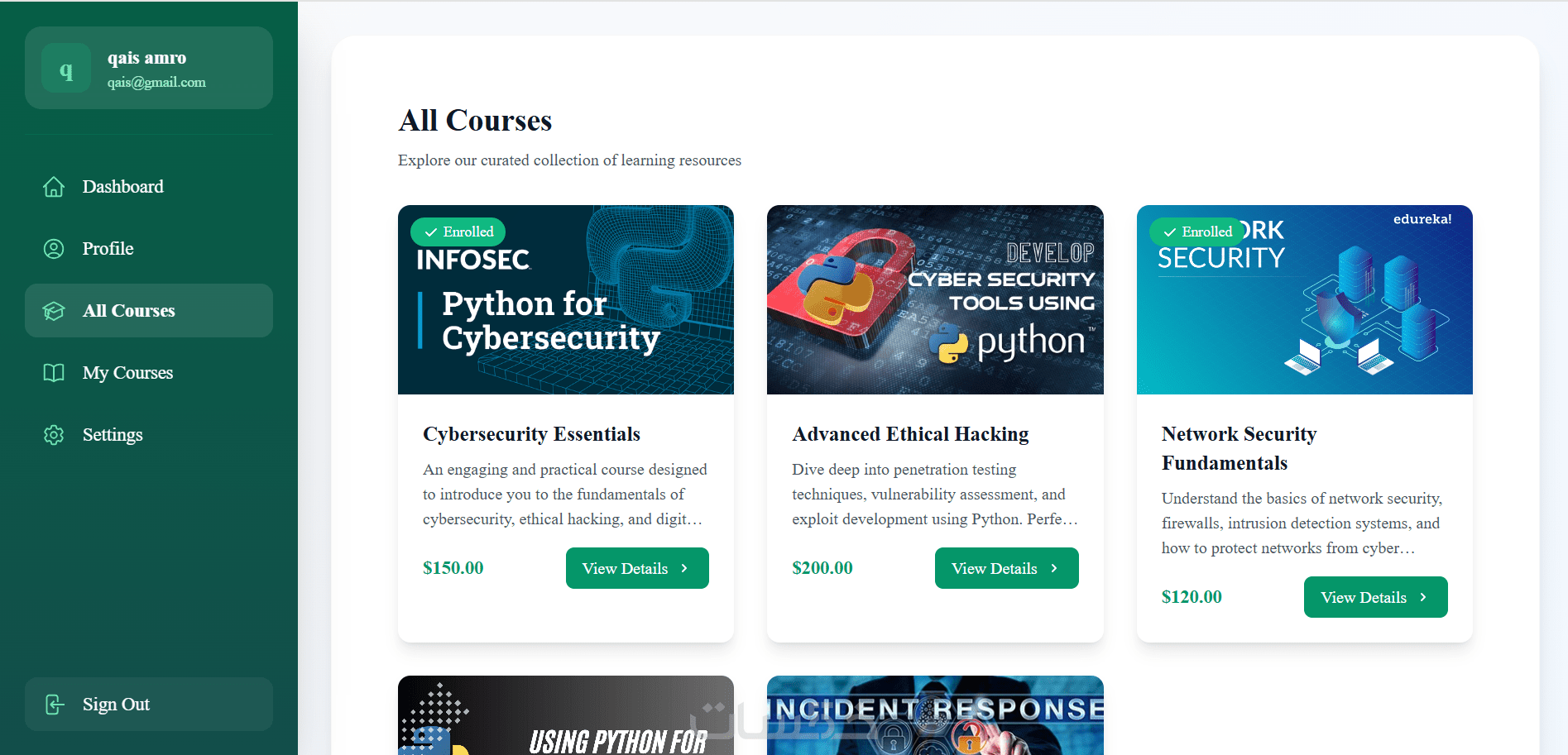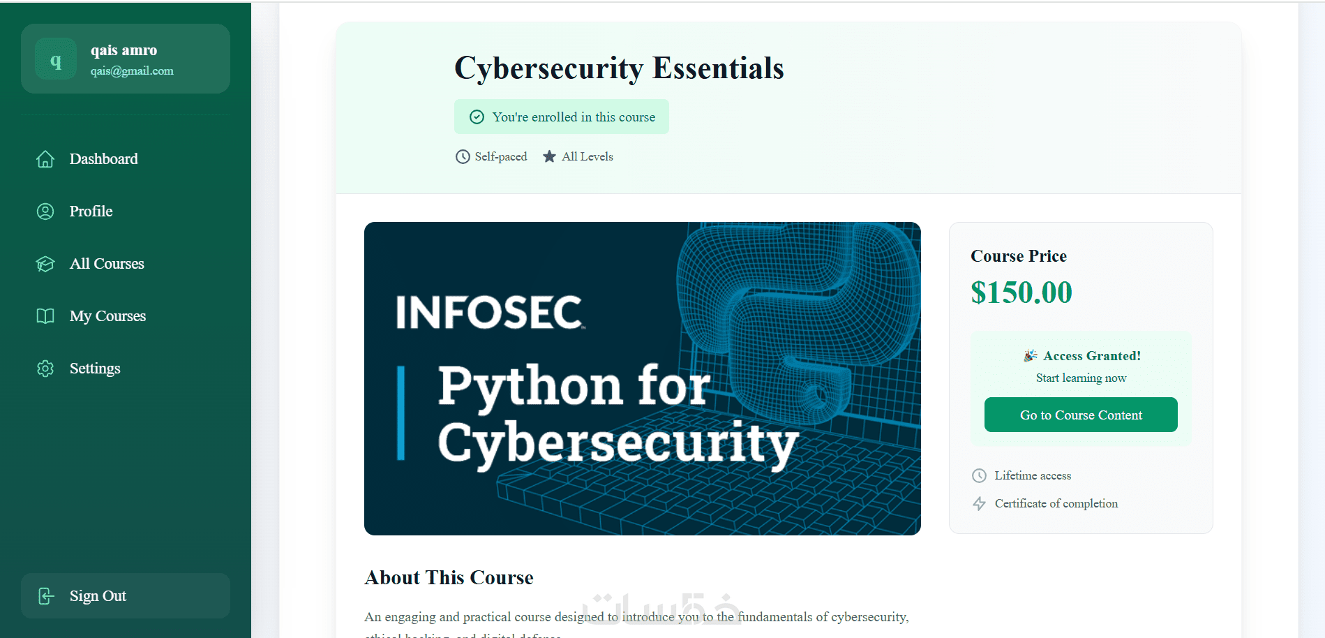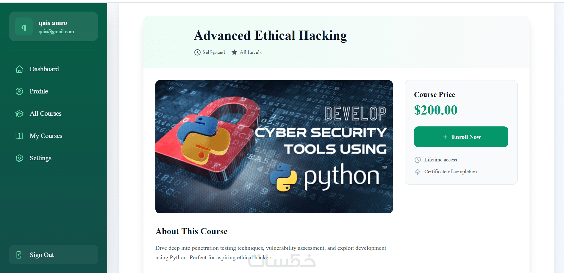 دمج بوابة دفع إلكتروني آمنة للدورات المدفوعة.