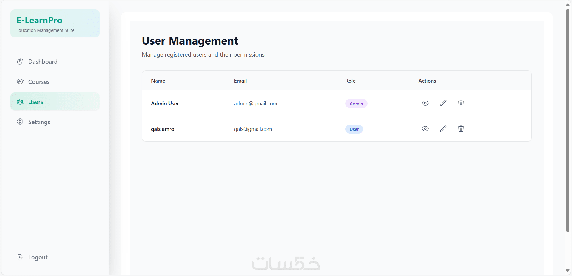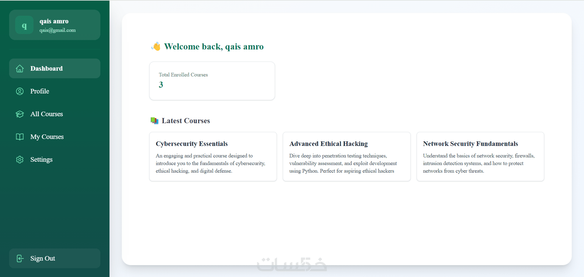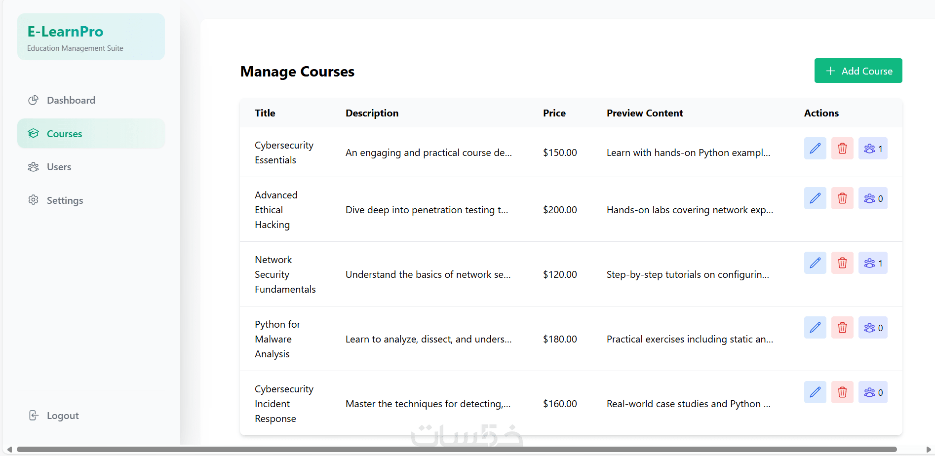 لوحة تحكم للإدارة لإضافة وتعديل الكورسات والمستخدمين بسهولة.