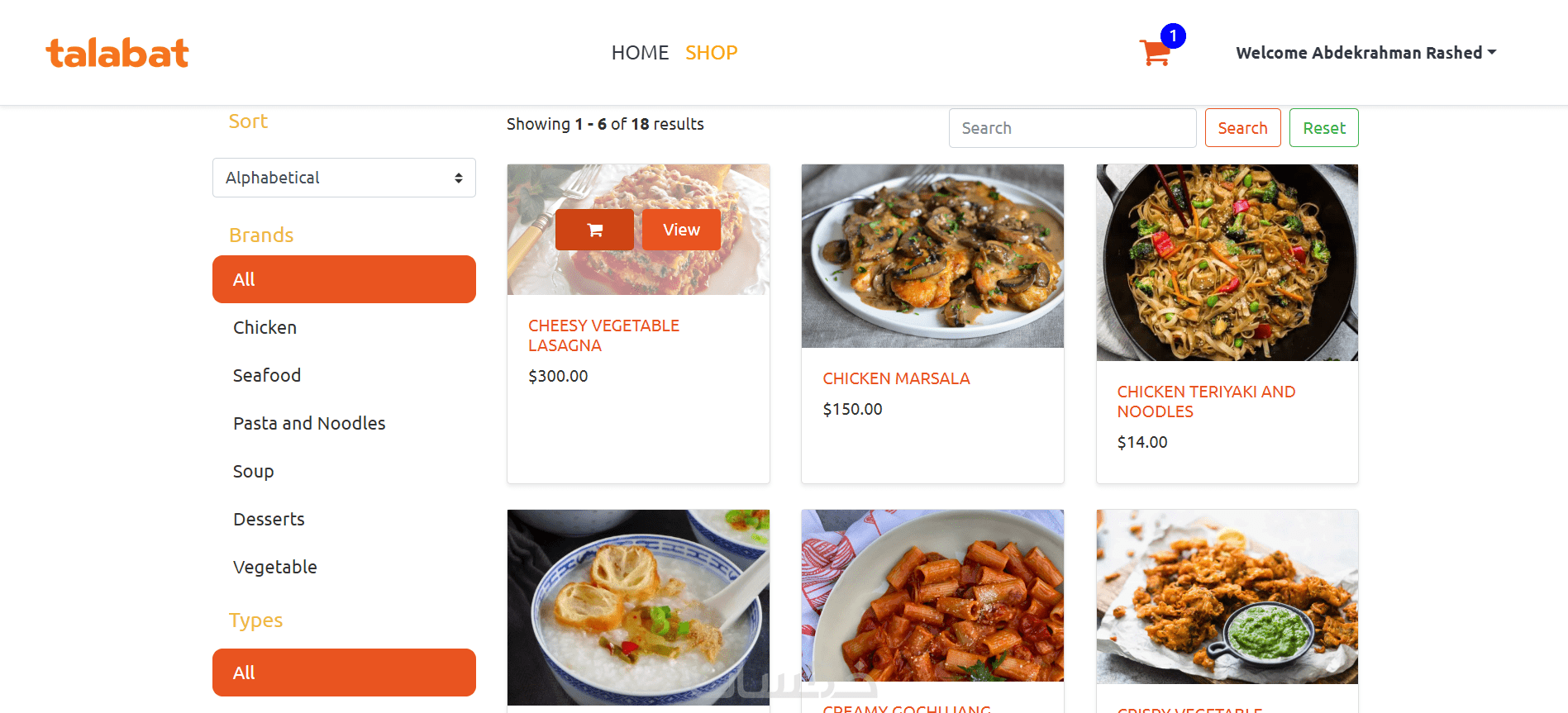 تشمل تسجيل الدخول، إدارة المنتجات، الطلبات، السلة