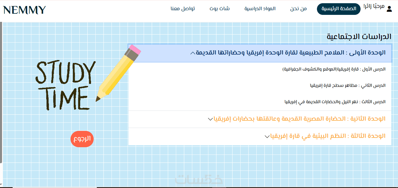صفحة الدروس والشرح (تضم فيديوهات – ملخصات – أسئلة)