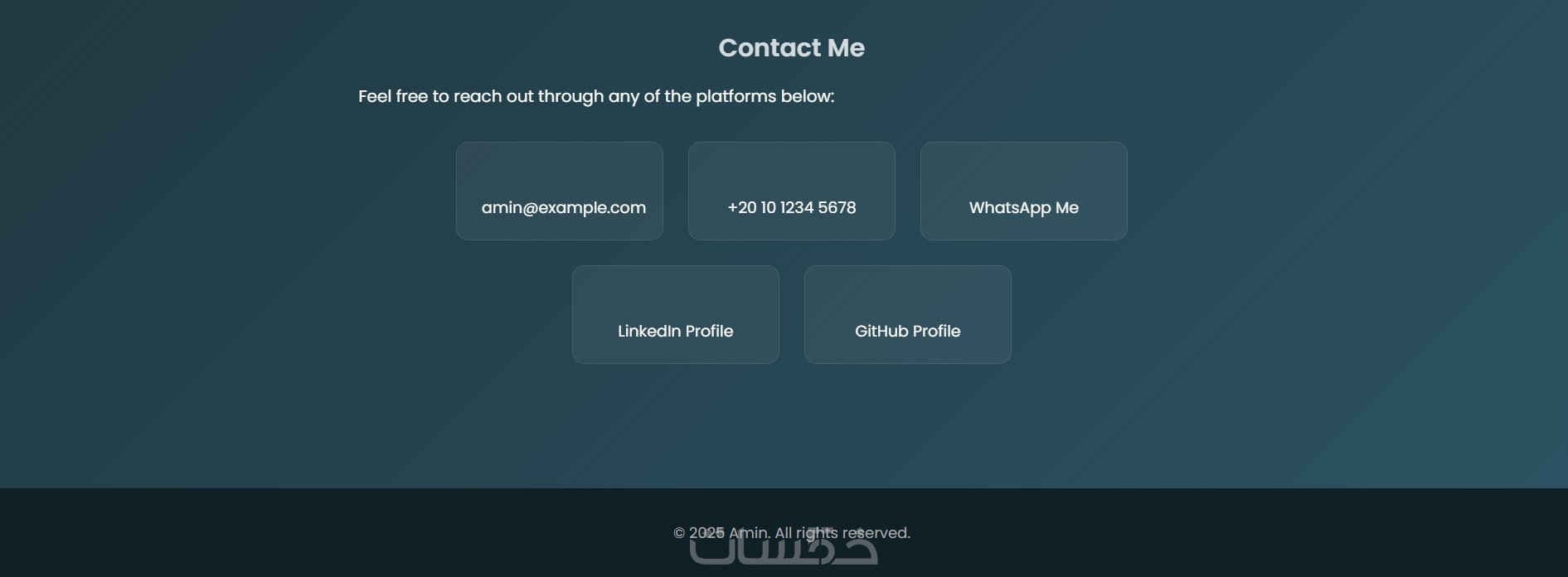 تواصل (Contact): نموذج تواصل بسيط أو روابط تتيح للزوار التواصل معك بسهولة.