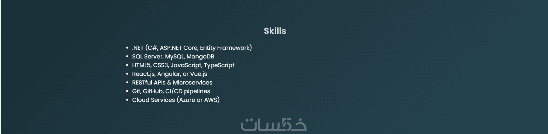 من أنا (About): نبذة عنك، مهاراتك، وخبراتك بطريقة مرتبة وواضحة.