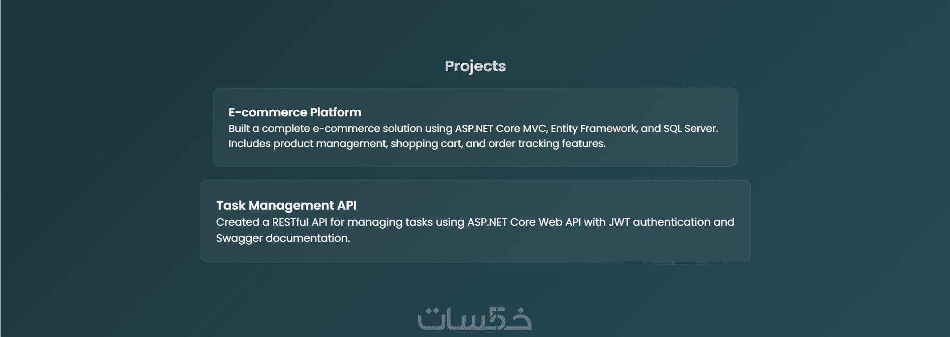 أعمالي (Projects): عرض لأبرز أعمالك أو نماذج شغل تبرز مستواك.