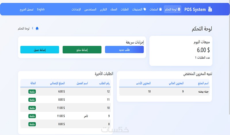-لوحة تحكم للعميل.