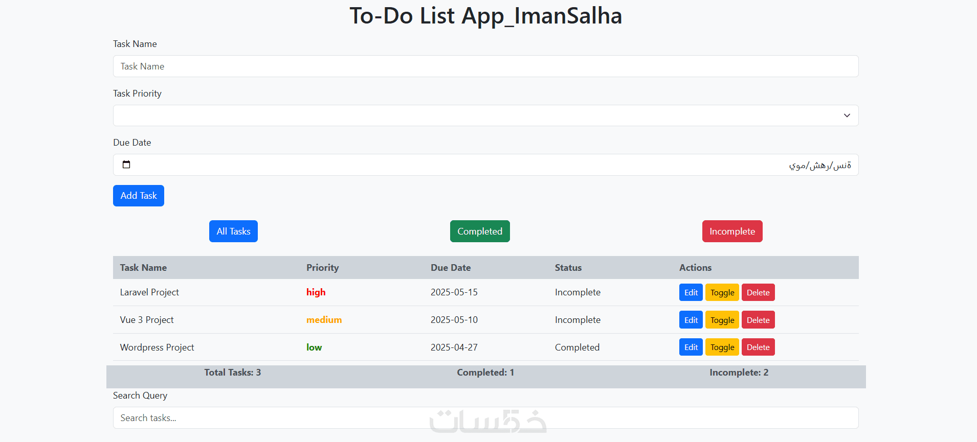 - تصميم وبرمجة باستخدام: HTML, CSS, Bootstrap, Vue.js
