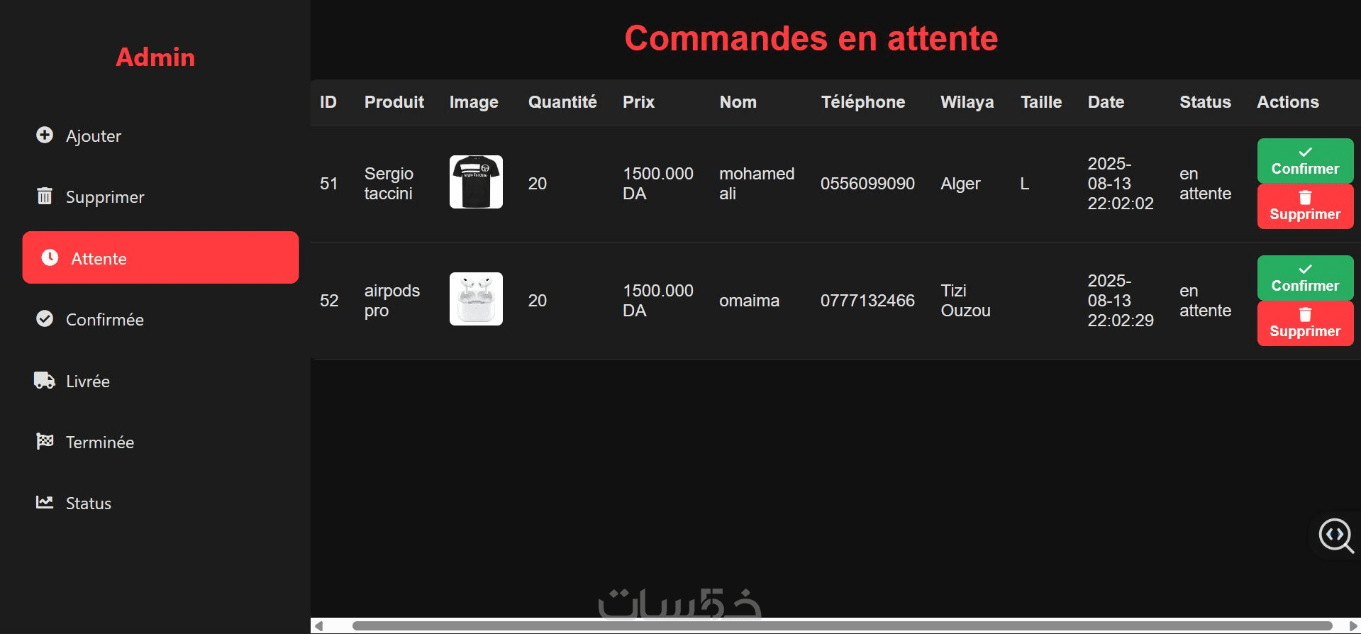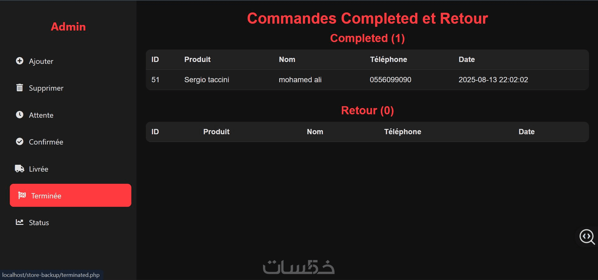 لوحة تحكم لإدارة المنتجات، الطلبات، العملاء، والتقارير