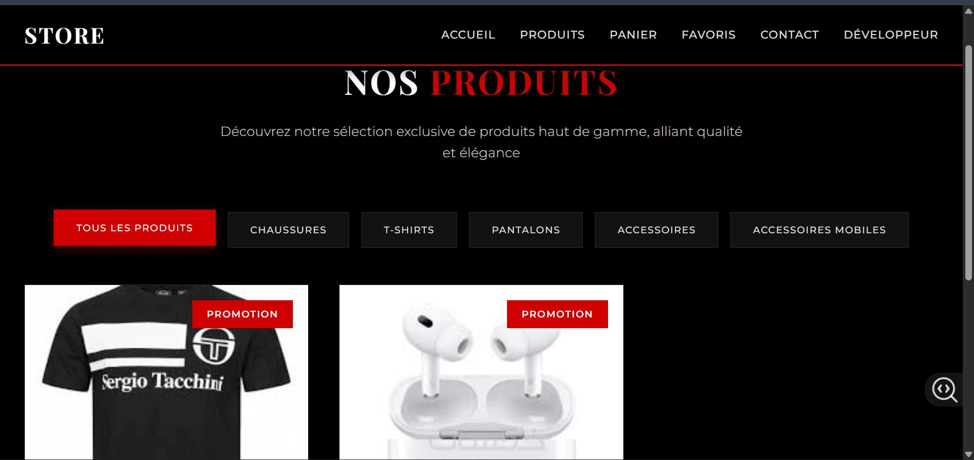 متجر إلكتروني متكامل يحتوي على 3 صفحات أساسية: