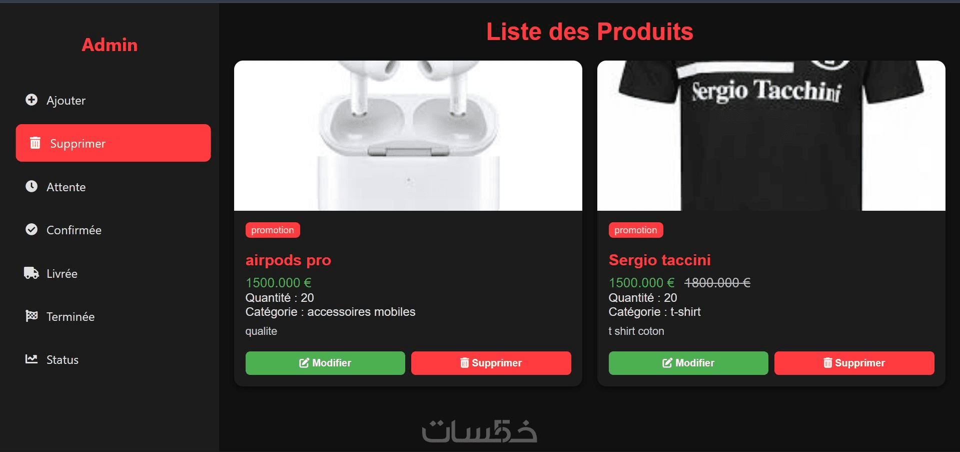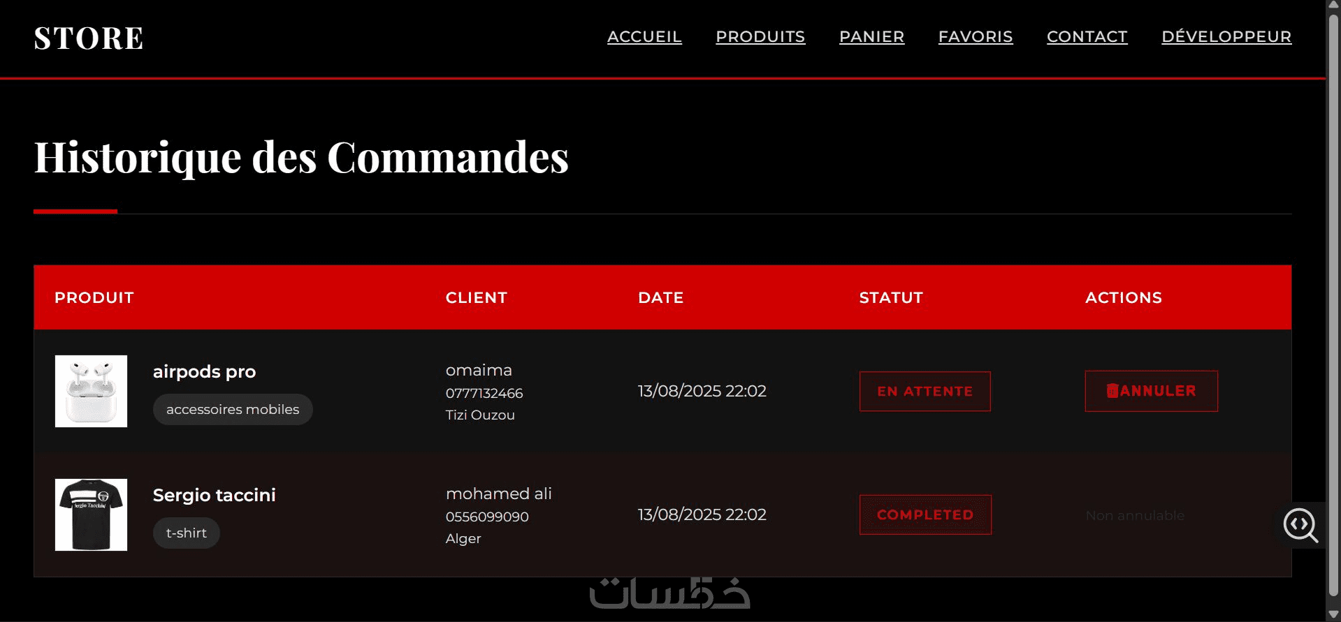 صفحة المنتجات – قائمة المنتجات مع تفاصيلها.