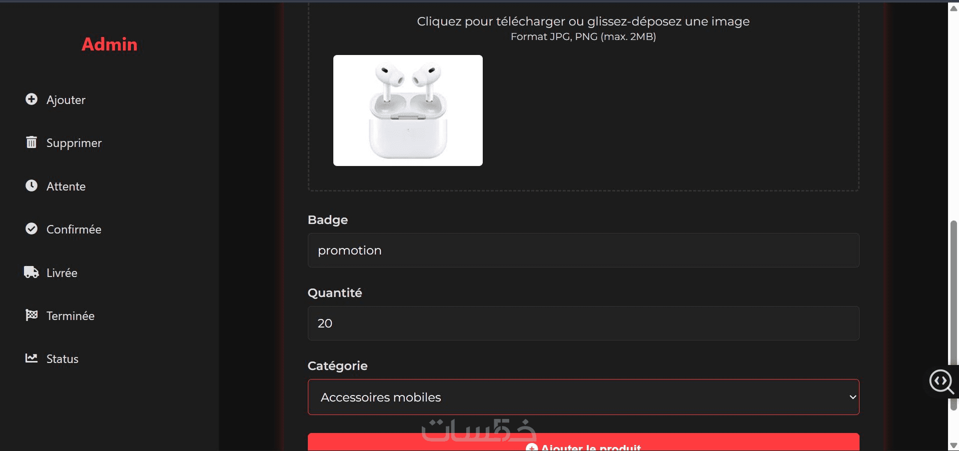 إمكانية إضافة سلة مشتريات وصفحة لإتمام الطلبات.