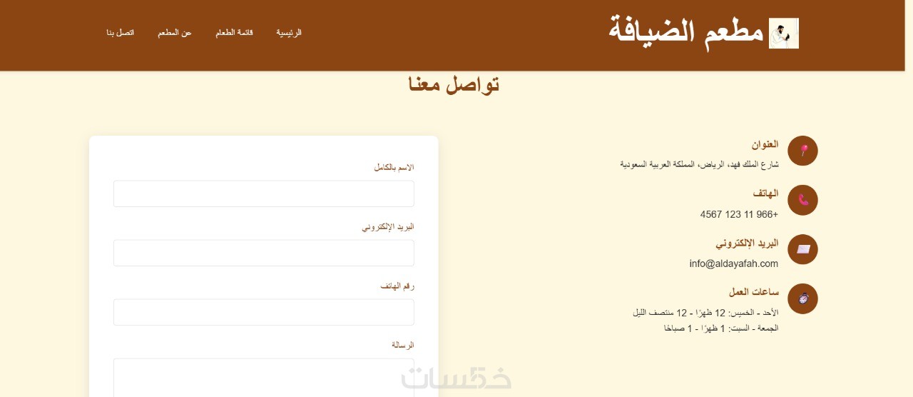 أقوم بتقسيم الموقع لأقسام واضحة مثل: الرئيسية، قائمة الطعام، من نحن، تواصل معنا… حسب طلبك.
