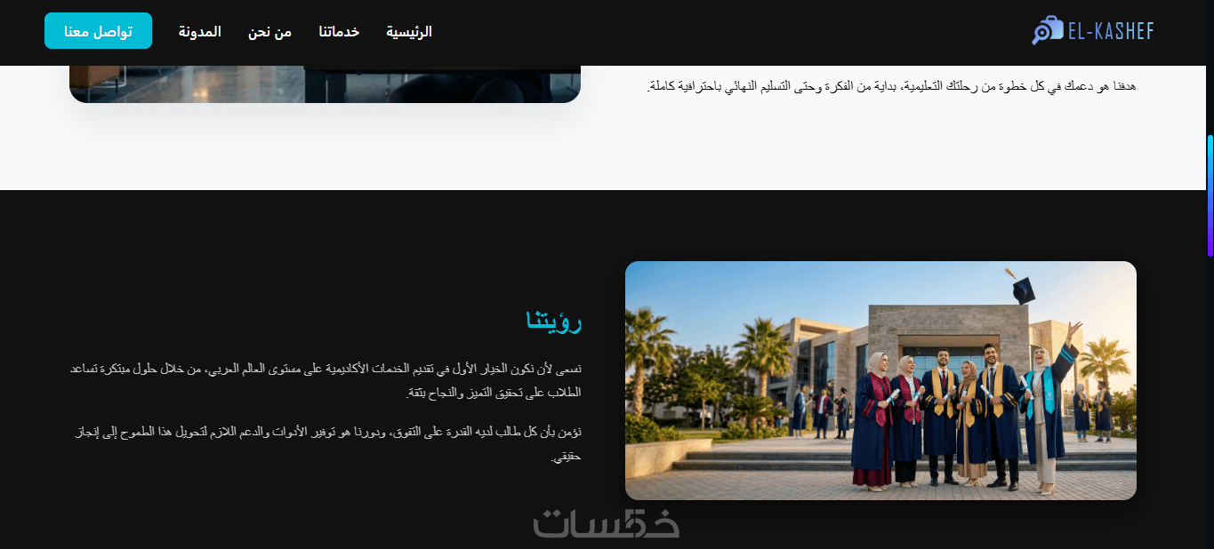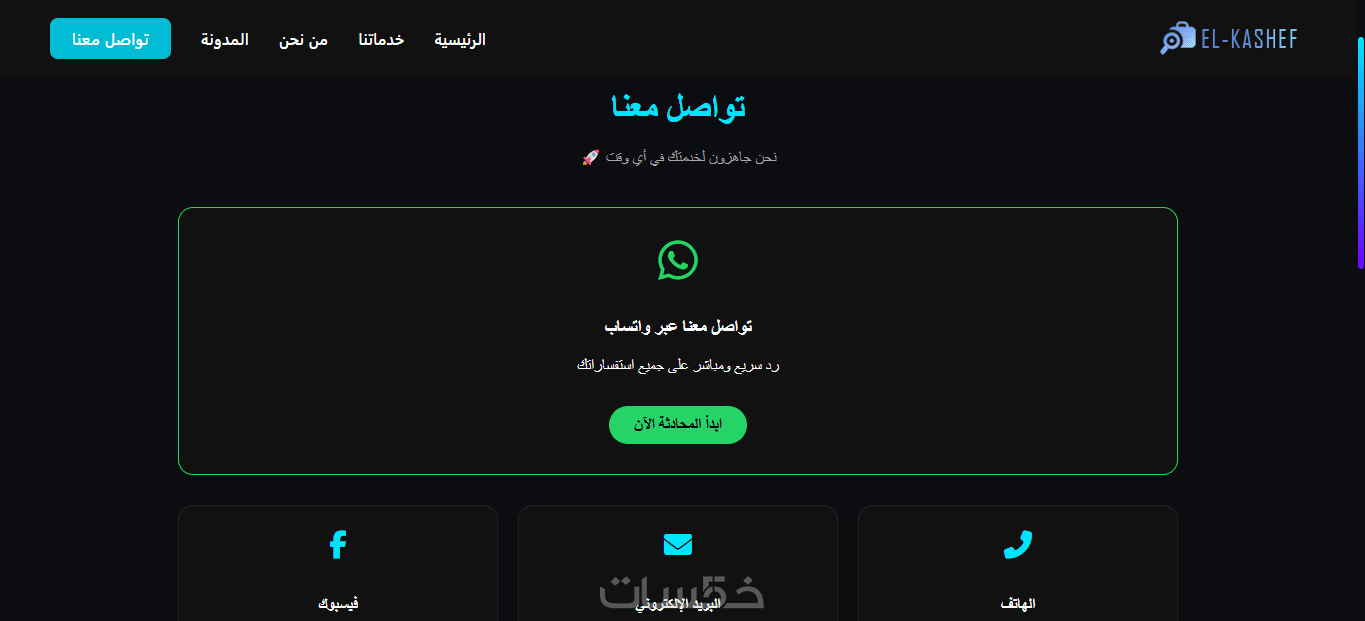 نظام الدعوة للإجراء (CTA): أزرار تواصل ذكية تتيح للعميل طلب الخدمة فوراً عبر الـ WhatsApp أو وسائل التواصل المتاحة.