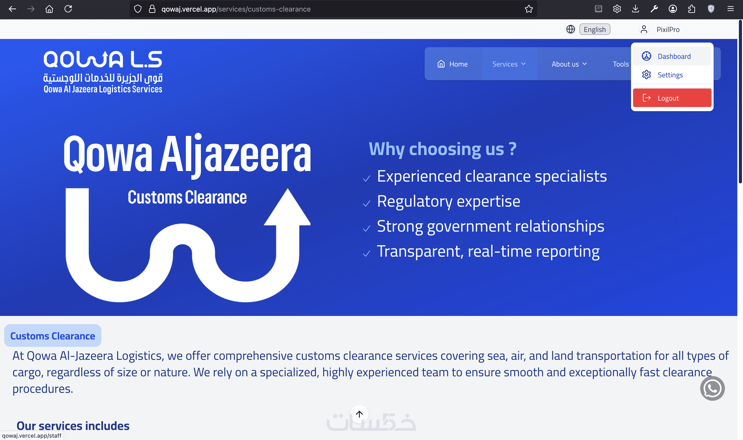 نستخدم في عمل المواقع بشكل عام لغة Javascript باستخدام اطار عمل Nextjs ونتأكد دائما بأستخدام آخر تحديثات الاطار للحصول على كل المزايا الجديدة والمتطورة