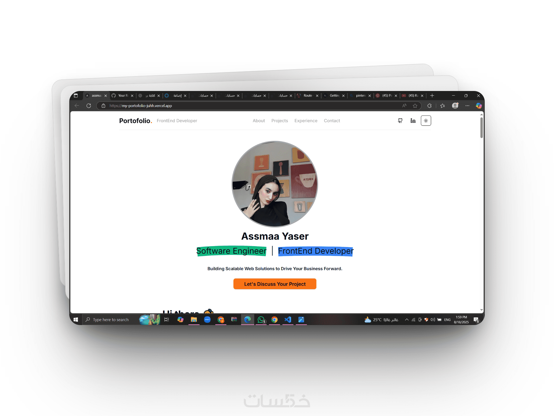 انا عصماء ياسر مصممة واجهات ومطوّرة مواقع بخبرة عامين في إنشاء بورتفوليو احترافي يعرض هويتك.